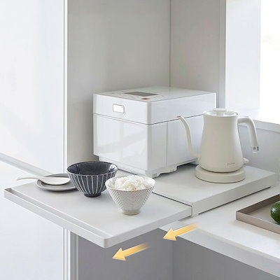レンジ置きラック 伸縮式 厚さ4cm レンジ スライドテーブル レンジ下 スライドトレー 引き出し 幅47cm×奥行36cm 引出しトレー レンジ置き レンジラック キッチン レンジ置きラック トレイ
