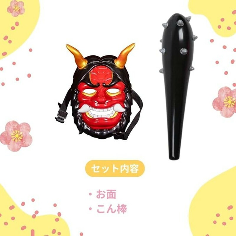 2点セット 鬼 お面 怖い 節分 豆まき 赤鬼 マスク 鬼金棒 デカこん棒 鬼お面 赤鬼 おに マスク コスプレ おにのお面 豆まき 鬼コスプレ お祭り オニ 鬼のお面 節分コスプレ 鬼のコスプレ コ