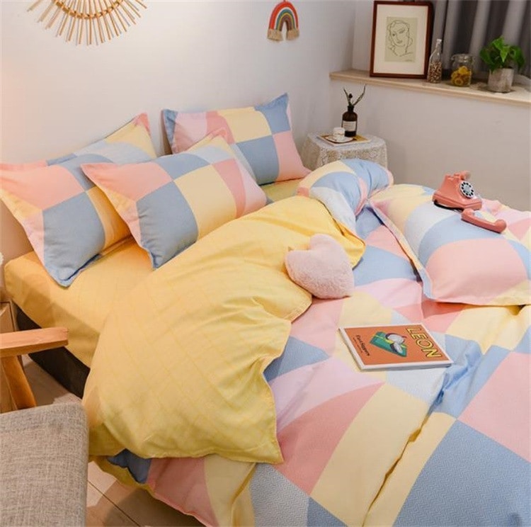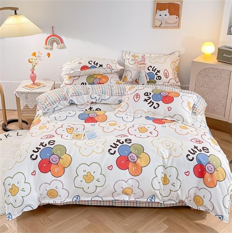 INSスタイル シンプル ピュアコットン ベッドセット 4点セット ドミトリー 怠惰な風 シーツ キルトカバー 3点セット