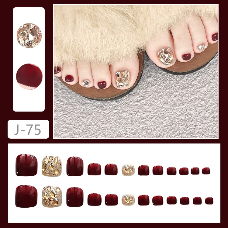 J75ブリュードの足の爪が終わったシャンパンダイヤモンドネイルパッチを爆破したリトルレッドブック偽の足の爪パッチ