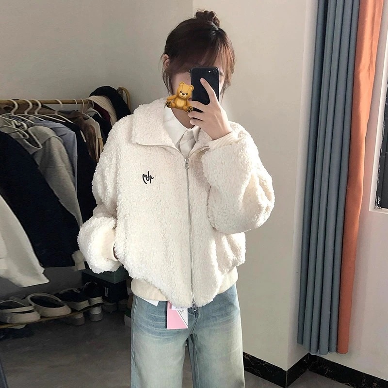 【3日出荷】韓国風ボアフリースロングスリーブジャケット 冬 ルーズフィット 裏地付きアウター コート 春服 レディース