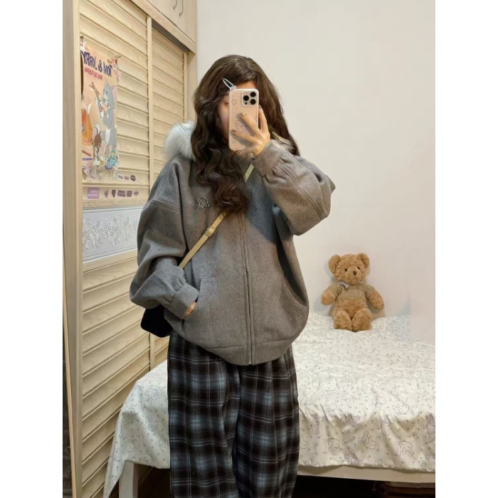 【3日出荷】裏起毛加厚リムーバブルファーフードパーカー ファッションオープンカーディガンスタイル コート 春服 レディース