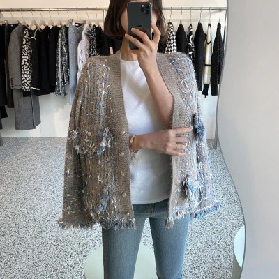 【3日出荷】秋冬ニットフリンジヘムミックスカラーカーディガン アウター コート 春服 レディース
