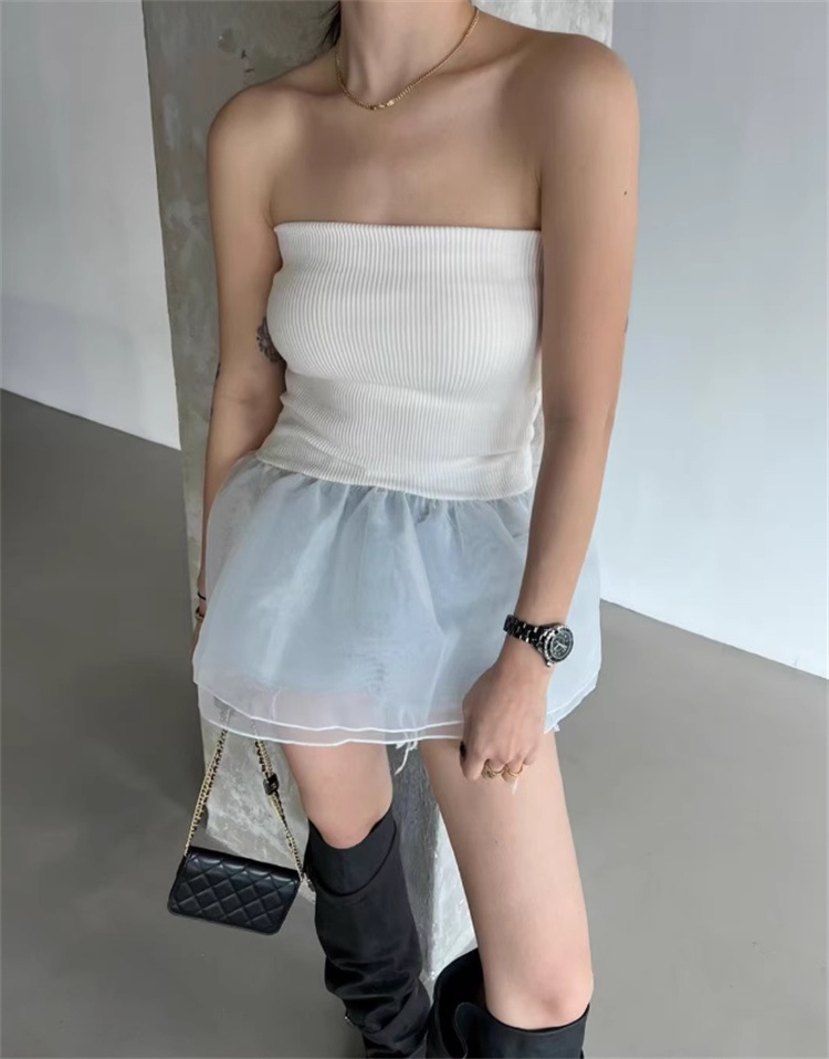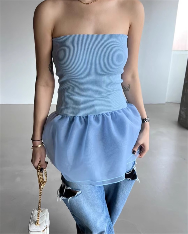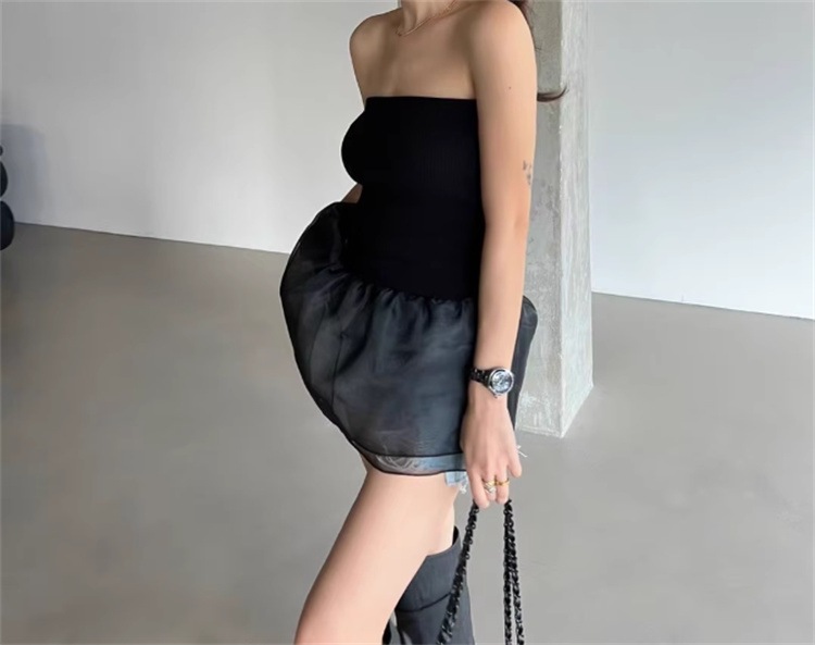 韓国ファッション セクシー拼接トップス メッシュ裾デザイン ノースリーブインナー/アウター