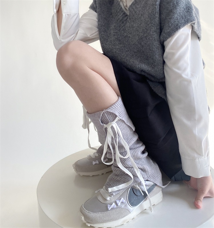 激安セール バレエ風 山盛り靴下 ニット靴下 ソリッドカラー靴下 sweet系 リボン 蝶ネクタイ 大人気 レッグウォーマー 中ストッキング 快適である