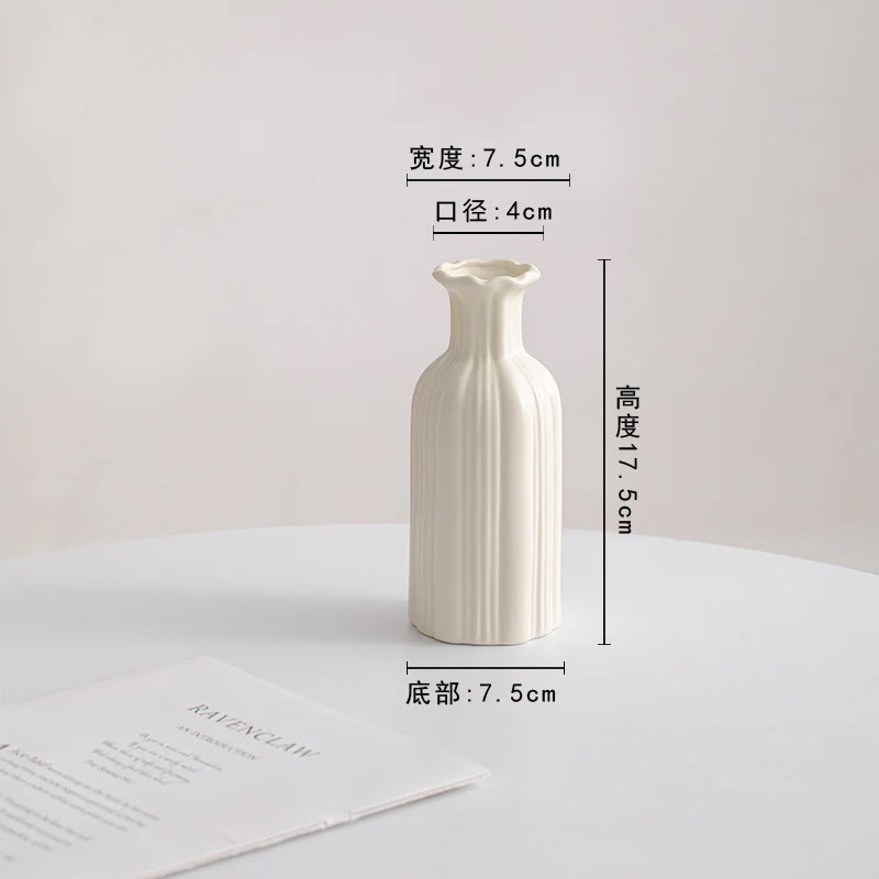 北欧シンプルクリームセラミック花瓶ドライフラワー水耕生花リビングデスクトップ生花アレンジメント花器