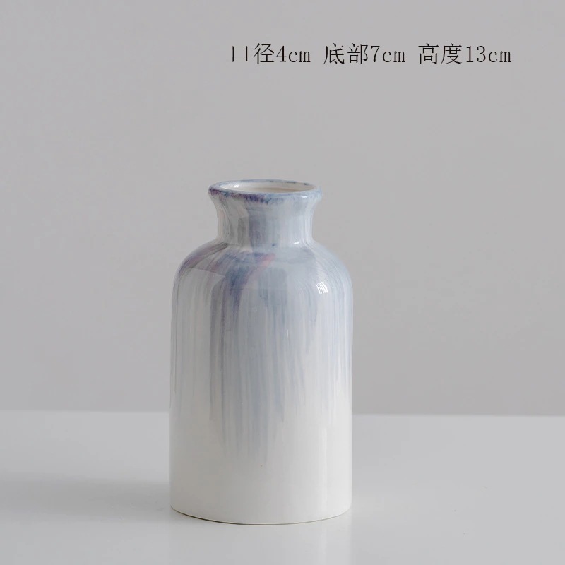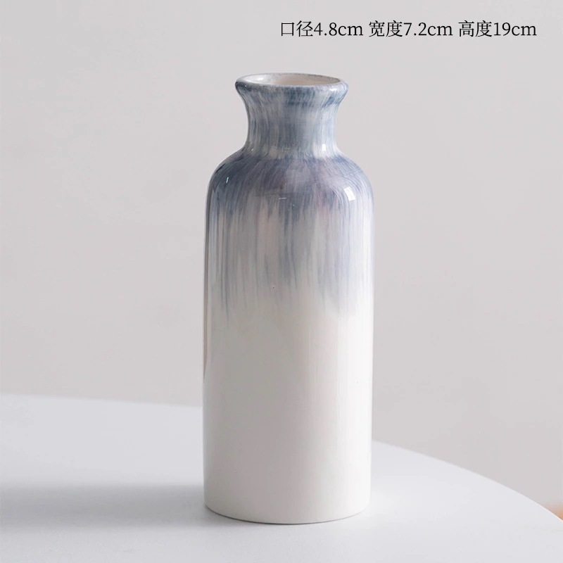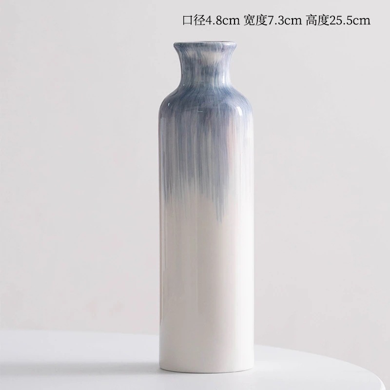 手描きブルーシンプルインスタ風セラミック装飾ドライフラワー生花花瓶 リビングフラワーアレンジメントモデルルーム装飾品