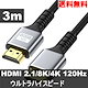 HDMIケーブル 3m シルバー ウルトラハイスピード (HDMI 2.1) 8K/4K/3D対応 switch2対応 新品 [95173]