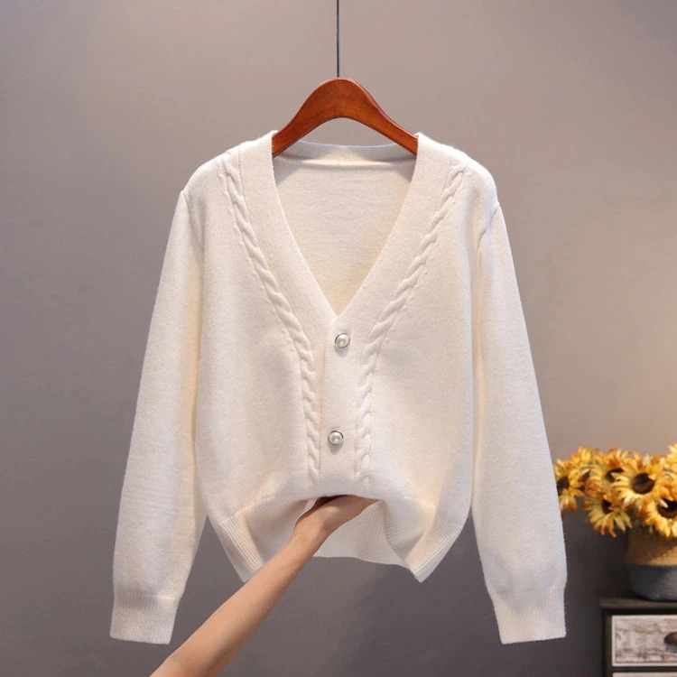人气新作韓国ファッション 長袖セーター女性用アウター ゆったりVネックニットカーディガン