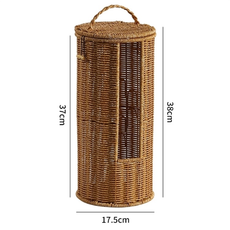 激安セール ナチュラルな籐編み風丸型バスケット ハンドル付きで移動簡単 トイレットペーパー整理に 2026新作