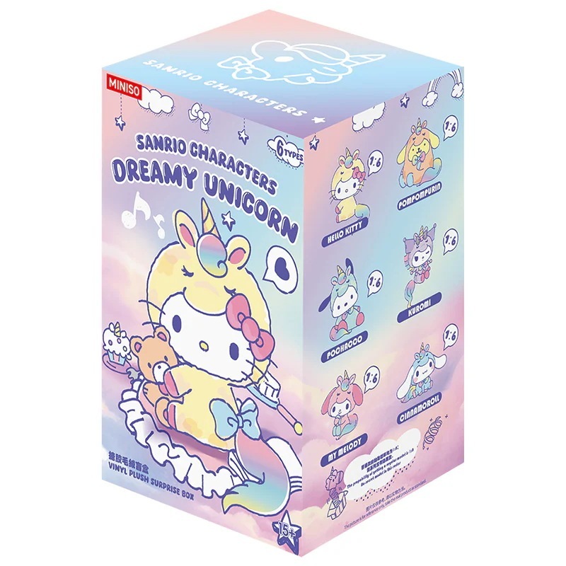 サンリオ公式正規品 名創優品 サンリオ ドリームユニコーンシリーズ ポチャッコ・マイメロディ・クロミ・ハローキティ・シナモロール・ポムポムプリン 中国限定 ブラインドボックス 搪胶ぬいぐるみ フィギュア
