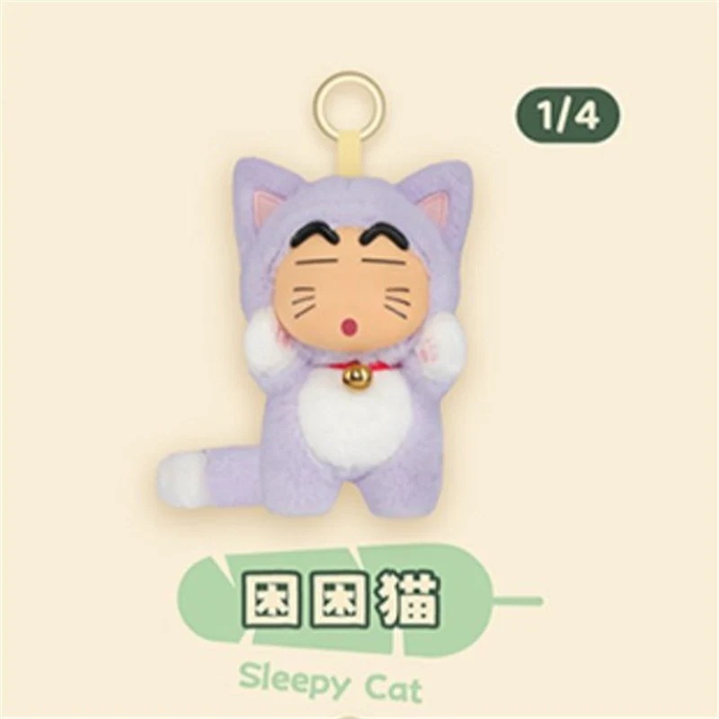 52TOYS52toys クレヨンしんちゃん ビニールフェイスぬいぐるみキーホルダー クリーム色 サル 犬 Sleepy Cat 海外限定盲盒 正規品保証