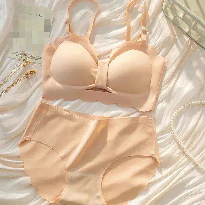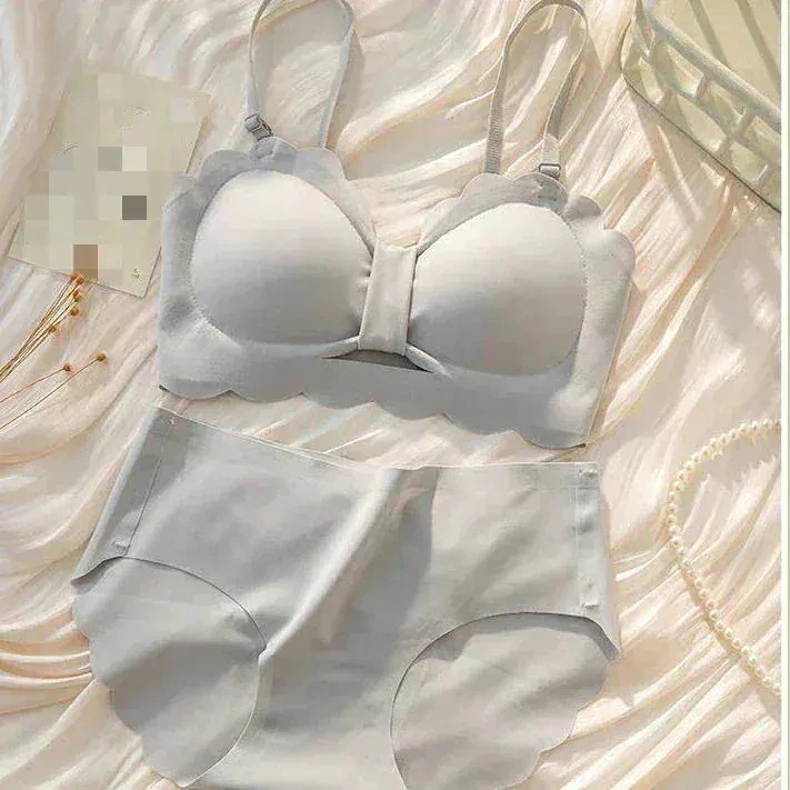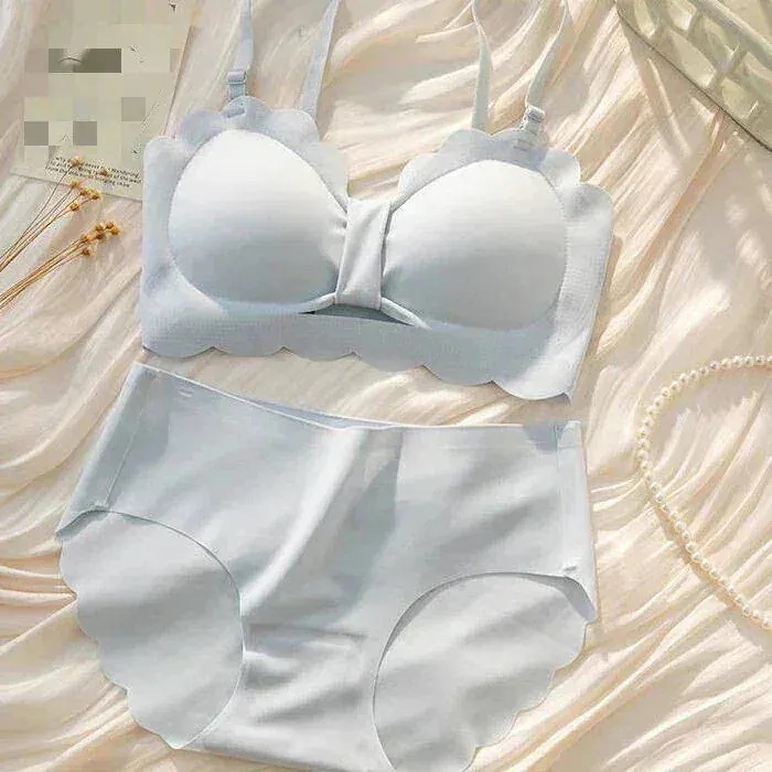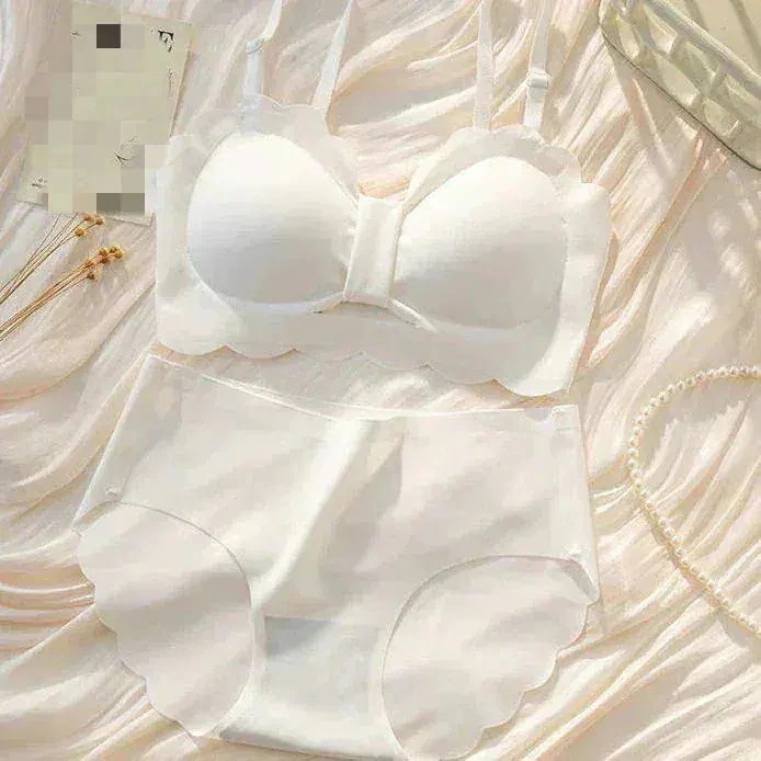 可愛いセット下着ブラレット純欲女性ストラップレスギャザリングほうにゅう少女スチールリングなし ワイヤー入りブラ ショーツ上下セット