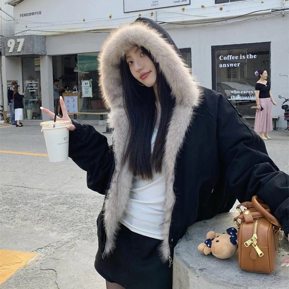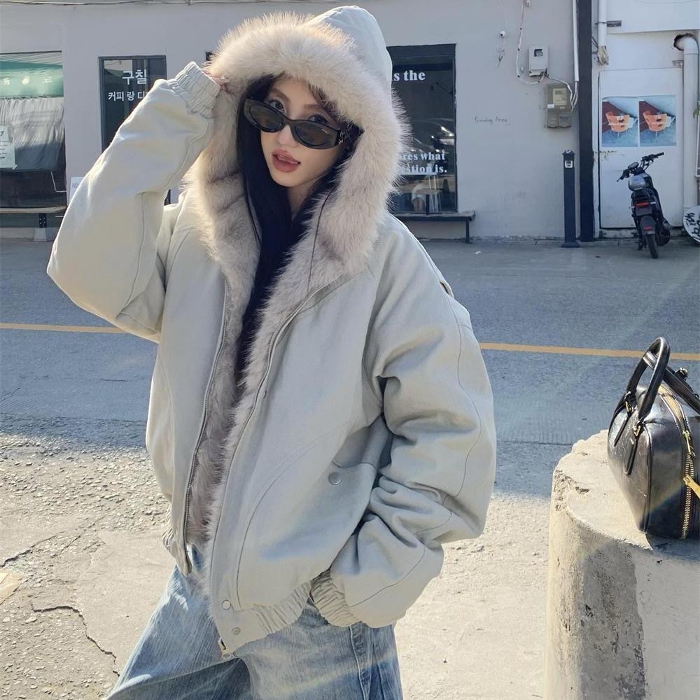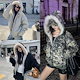 [y2k フィットミーチム ハイクオリティ] カモ ファー キルティング ダウン ファーダウン キルティングダウン ルーズ デイリー アウター 迷彩 ファーコートファージャケットチェス