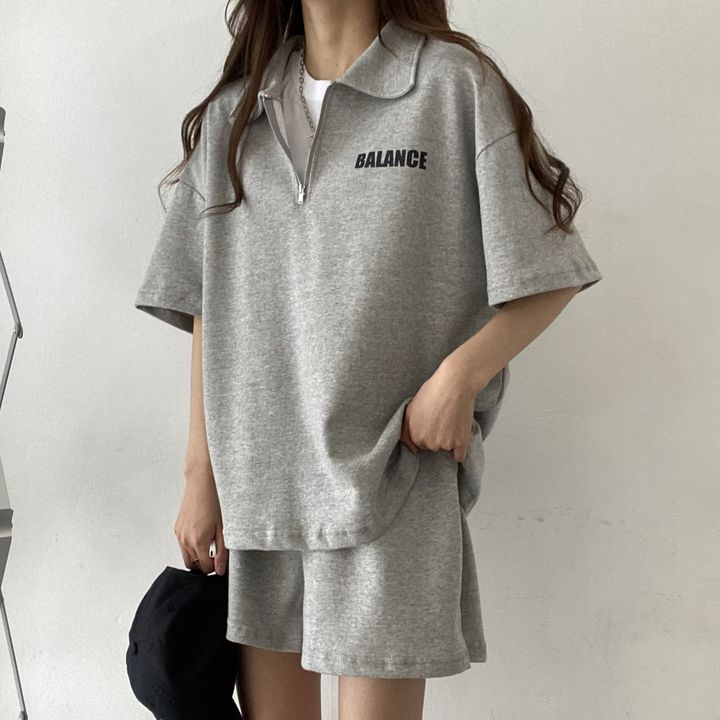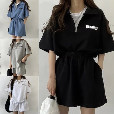 4色 セットアップ レディーススウェット ジップアップ半袖ショーツ2点セット カジュアルスポーツセットアップ セットアップ