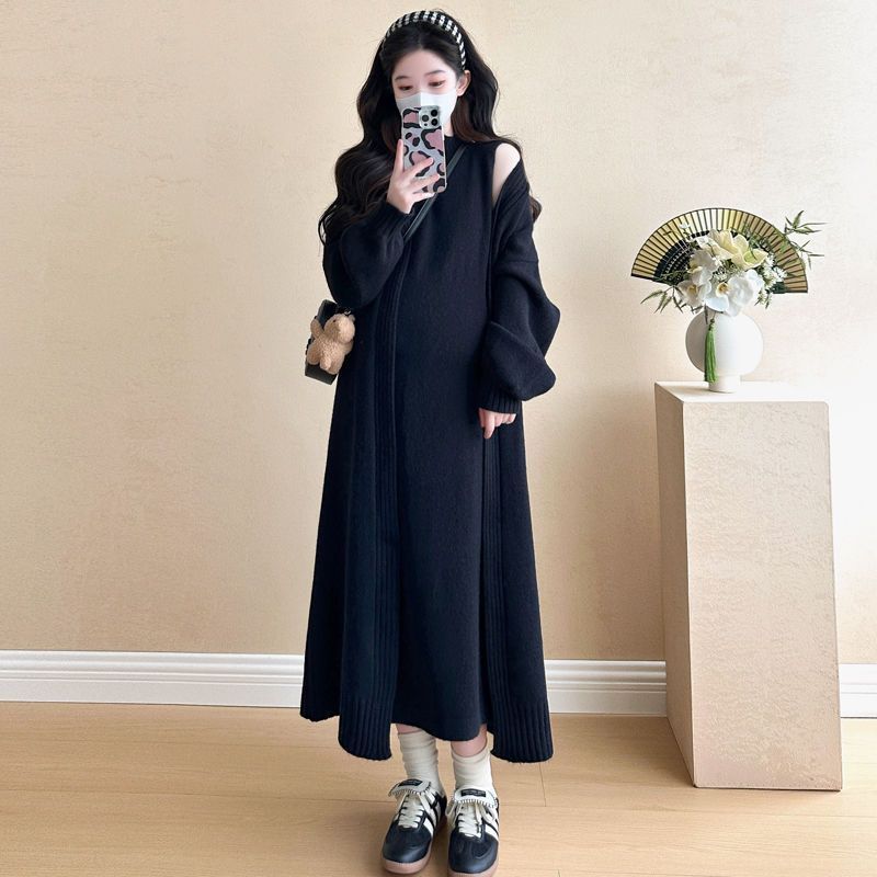 2026気品スーツニットカーディガンタンクトップワンピース2点セット厚手だるいハイネック韓国版 ニットワンピ