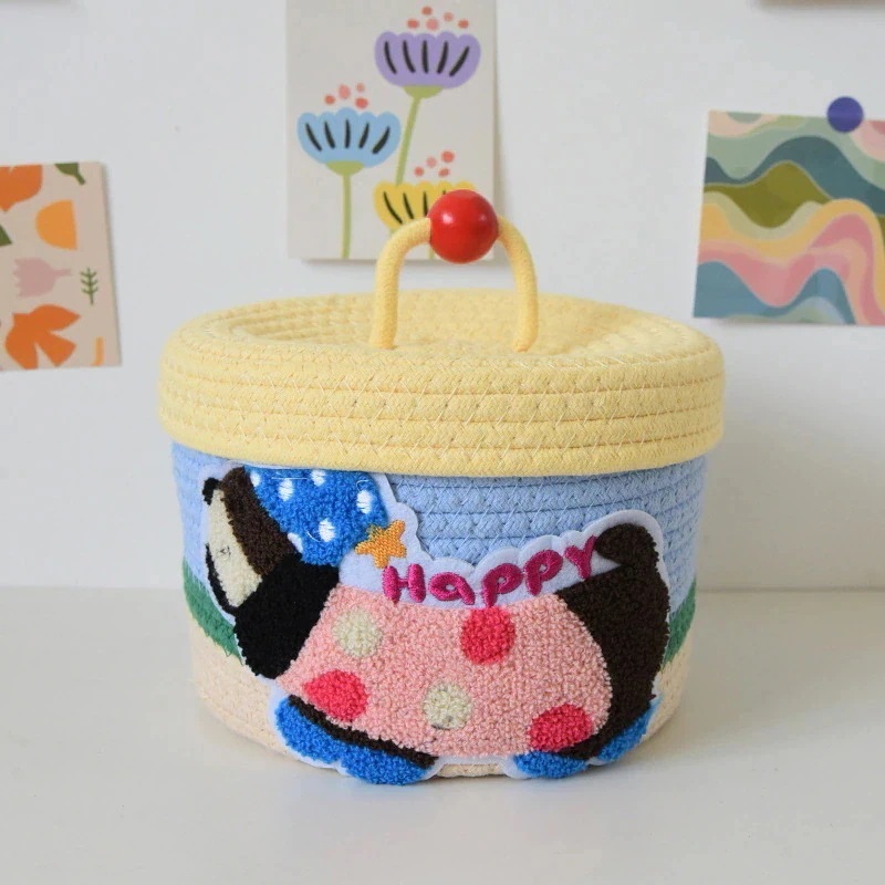 蓋付き卓上収納 編み込み収納 化粧品 蓋付き収納ボックス食料品バスケットスナックホームバスケット小さなバスケット収納ボックス 収納ボックス