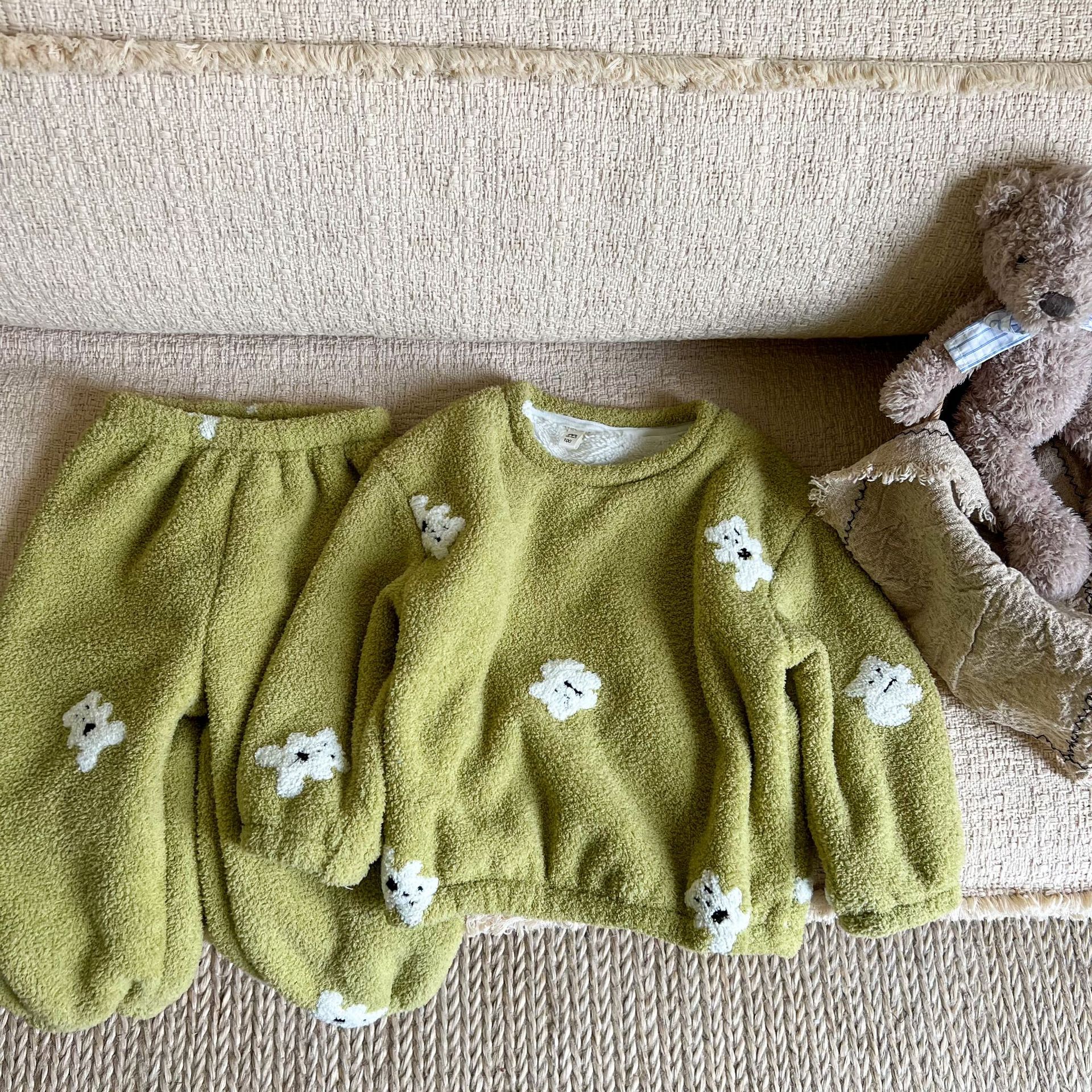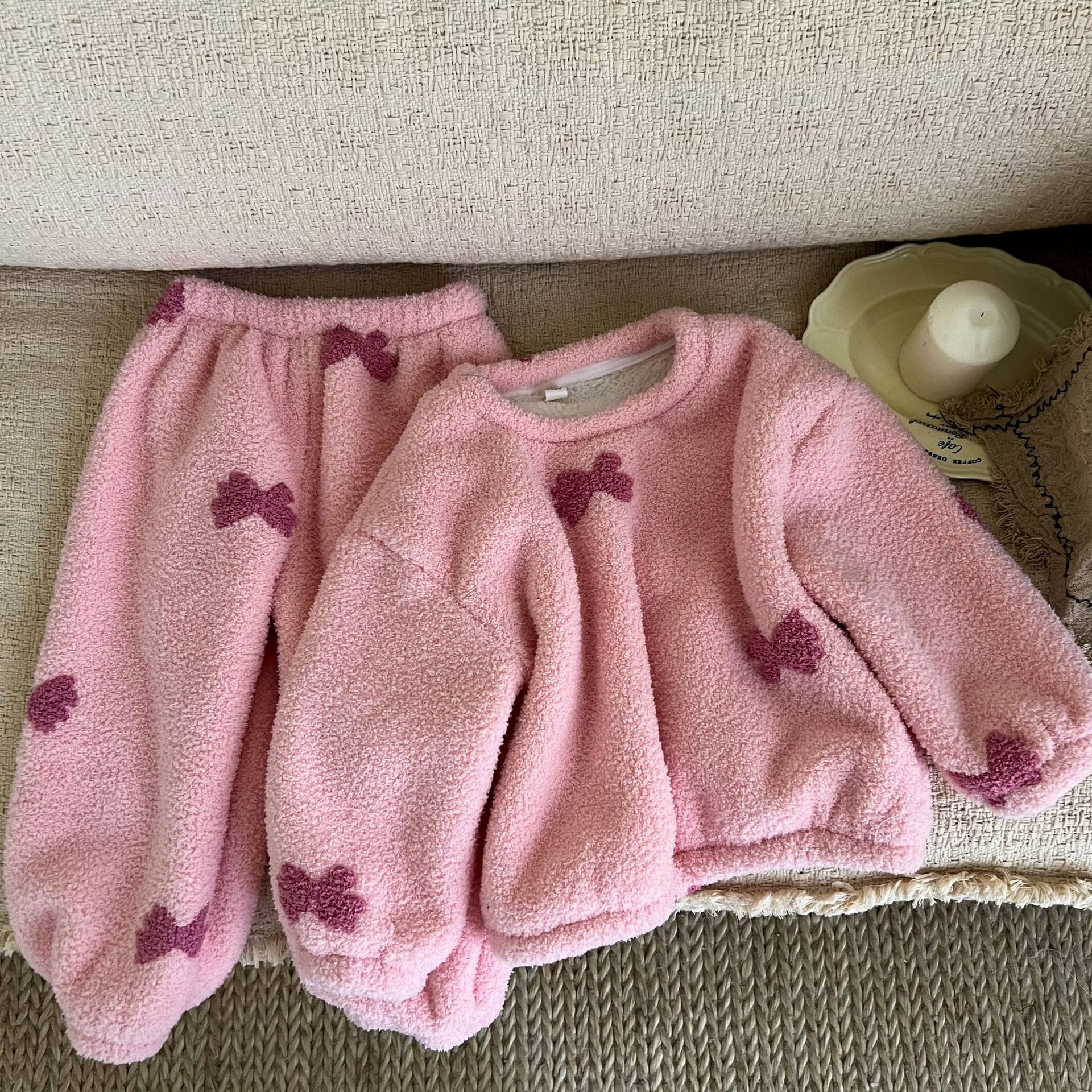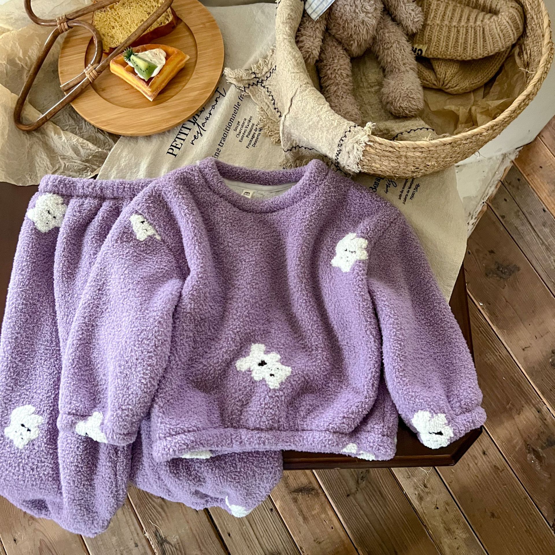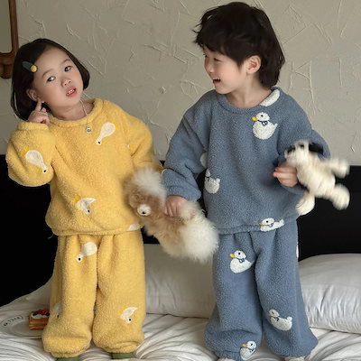 キッズパジャマ パジャマ 子供用裏起毛厚手保温ルームウェア 女の子用二重構造ソフトコットンフリース刺繍パジャマセット パジャマ