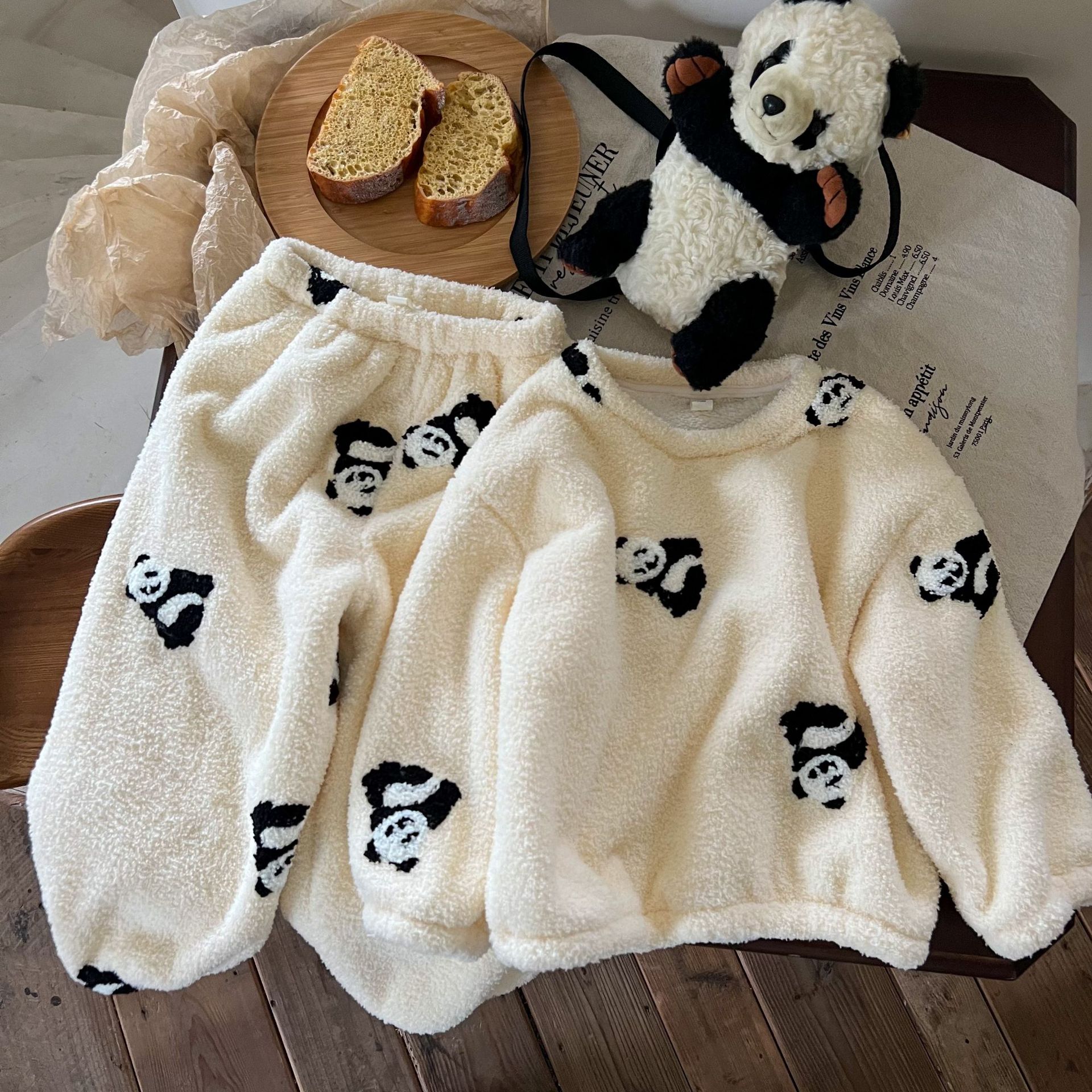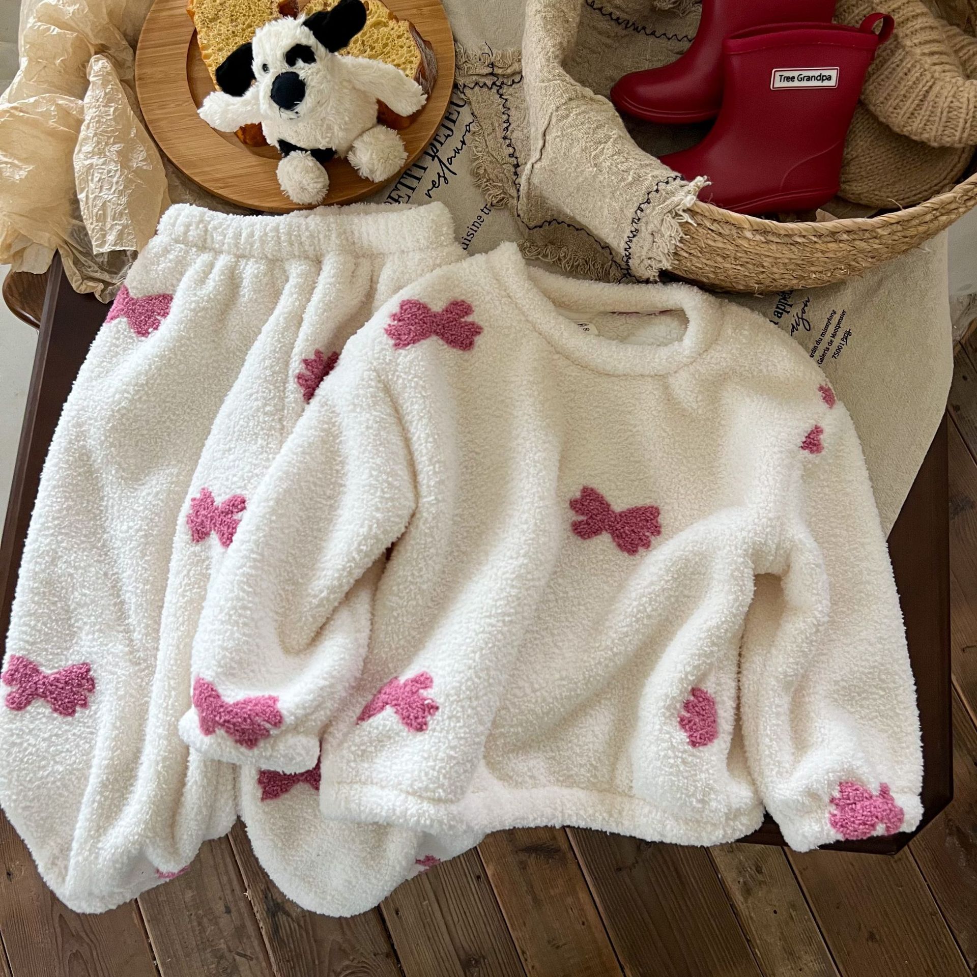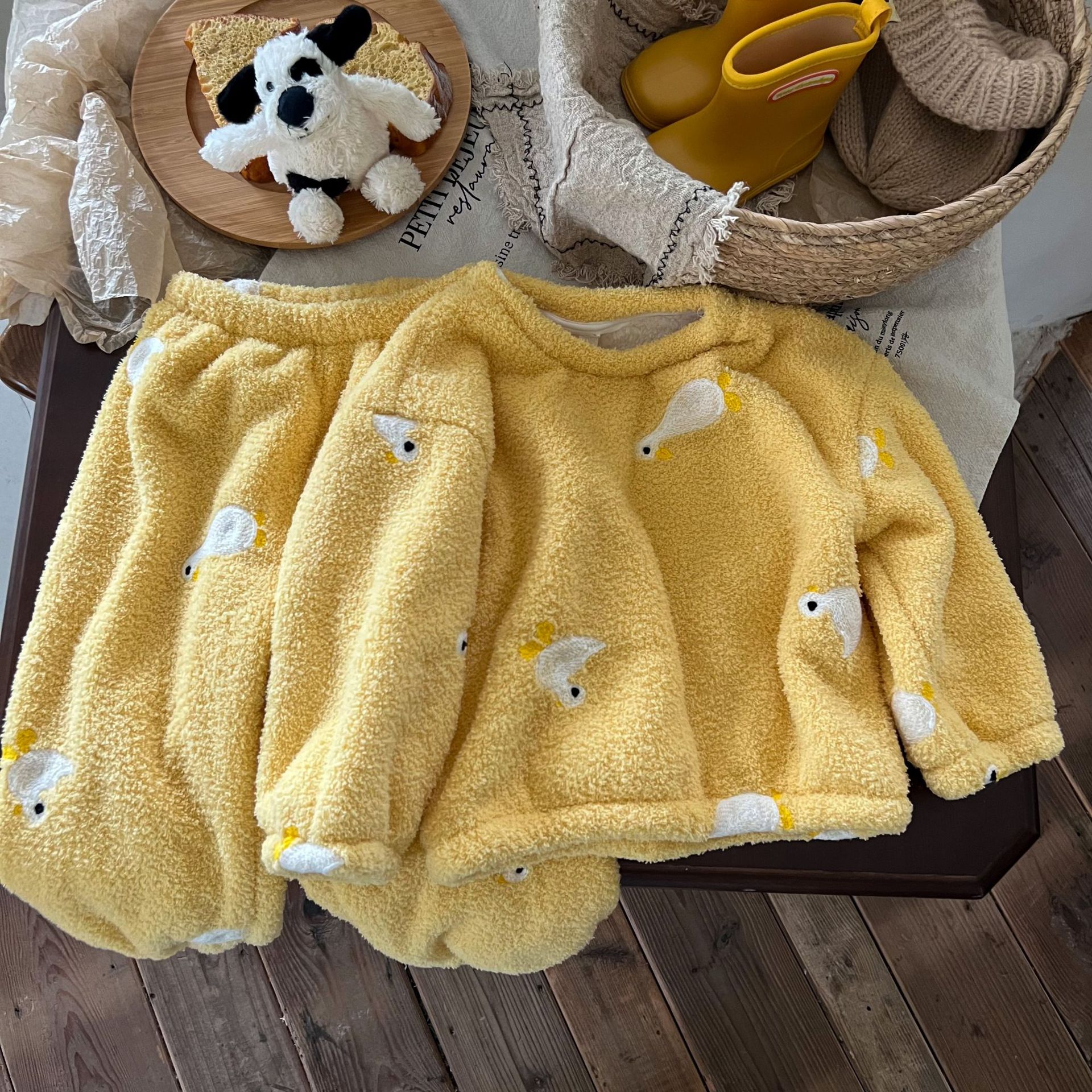 キッズパジャマ パジャマ 子供用裏起毛厚手保温ルームウェア 女の子用二重構造ソフトコットンフリース刺繍パジャマセット パジャマ