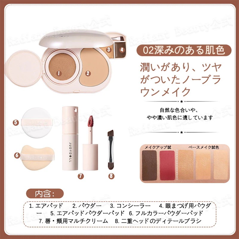 JUDYDOLL【急速出荷】顔面総合盤 エアクッションファンデーション パウダー フェイスパウダー 多機能 フェイス総合パレット チーク ハイライト ファンデーション アイブロウ 可愛い発色 全肌質対応 携帯に便利