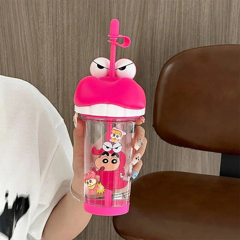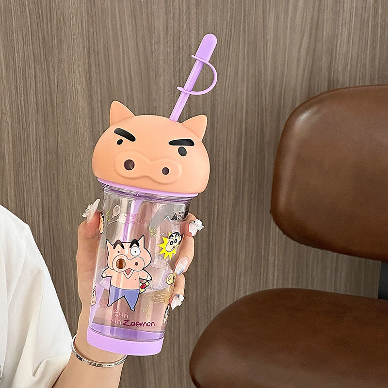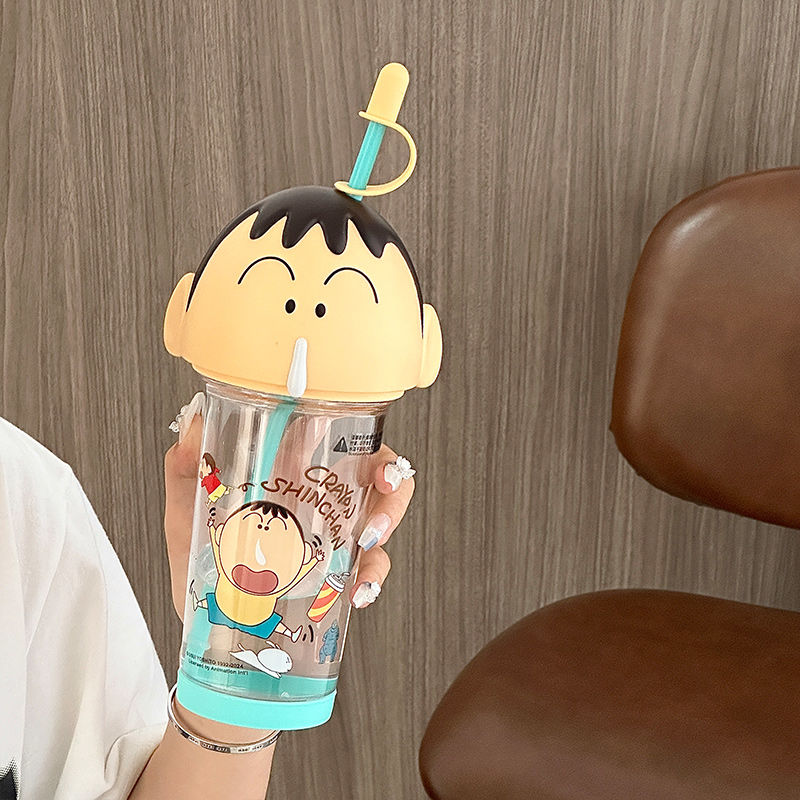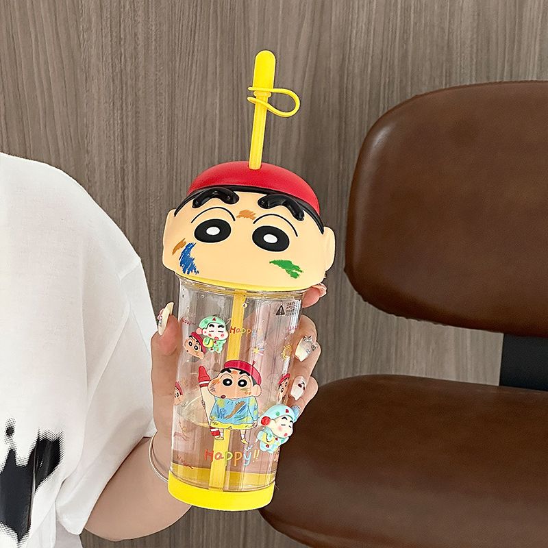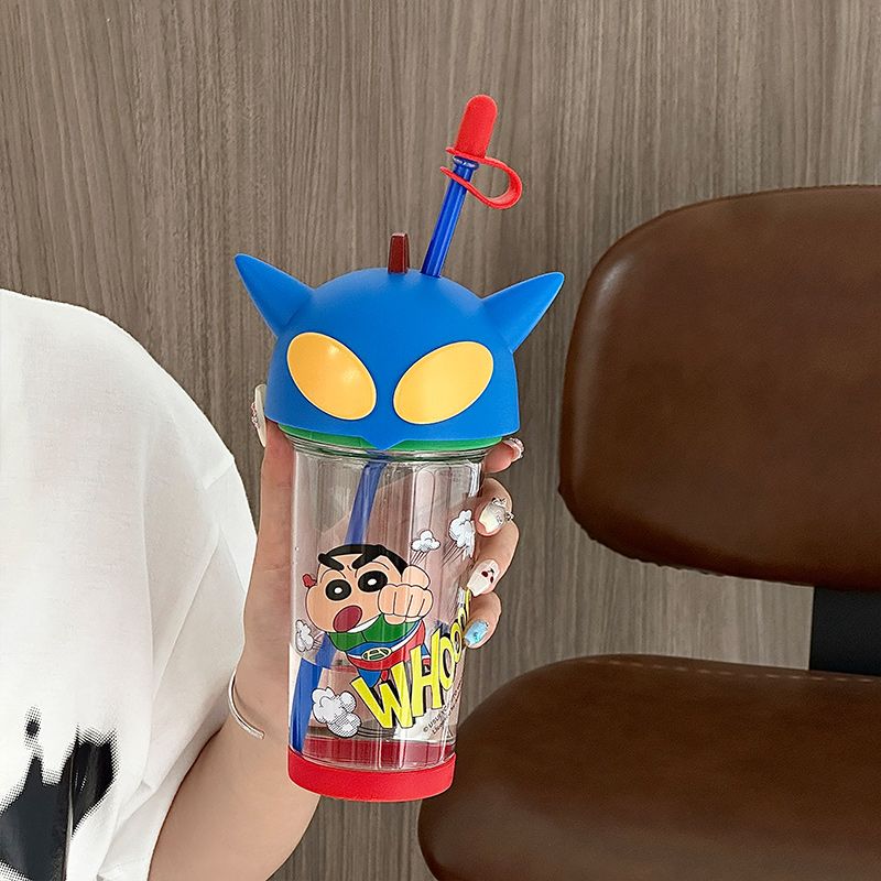 クレヨンしんちゃん 水筒500ml 透明ボトル ストローふた付き 蓋水筒 透明ボトル キッズ 超軽量 おしゃれ タンブラー子供マグボトル ウォーターボトル