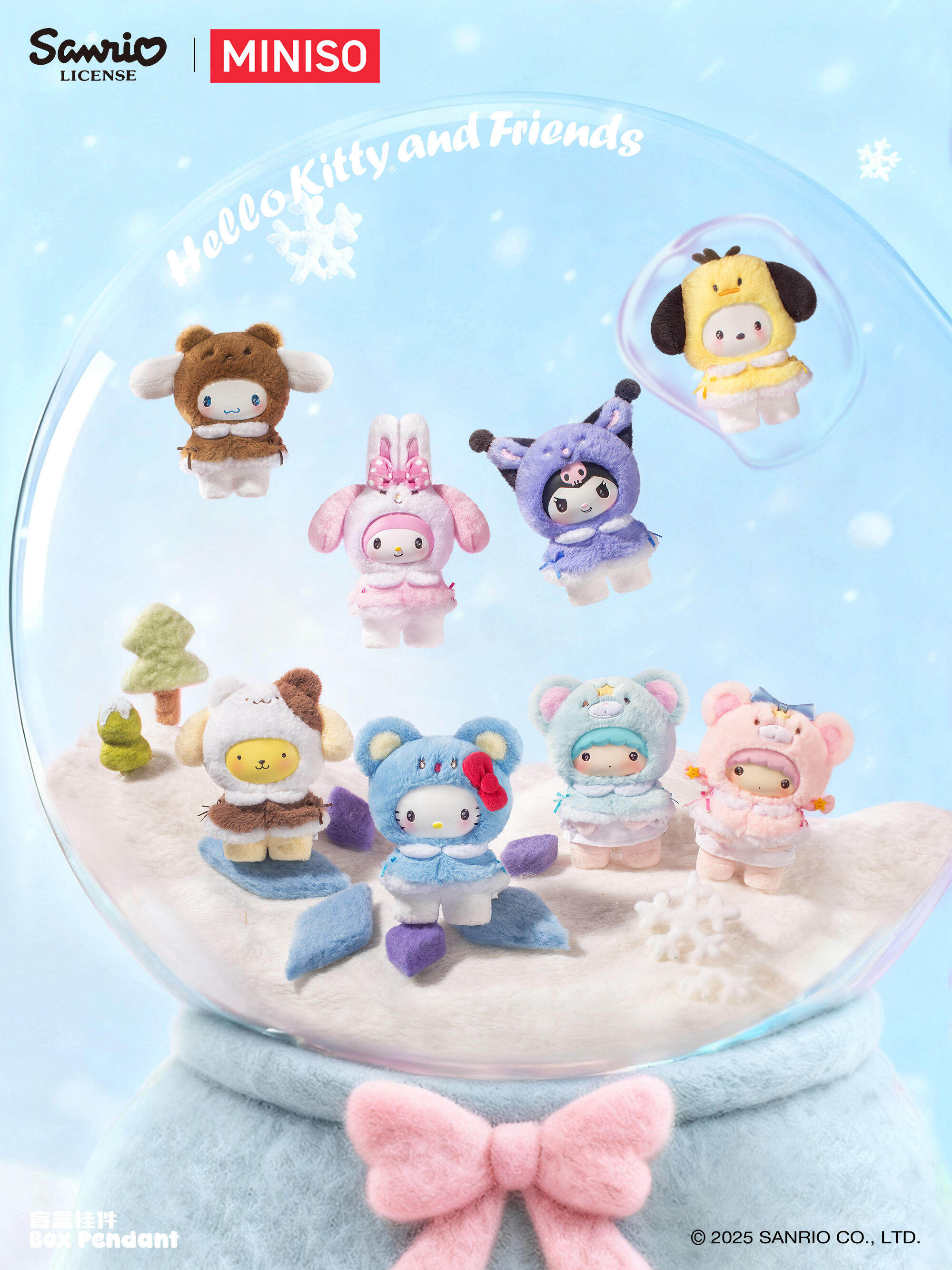 サンリオ日本未発売 名創優品 サンリオ 小さなケープシリーズ ハローキティ/マイメロディ/クロミ/ポチャッコ/シナモロール/ポムポムプリン 中国限定 ぬいぐるみマスコット ブラインドボックス