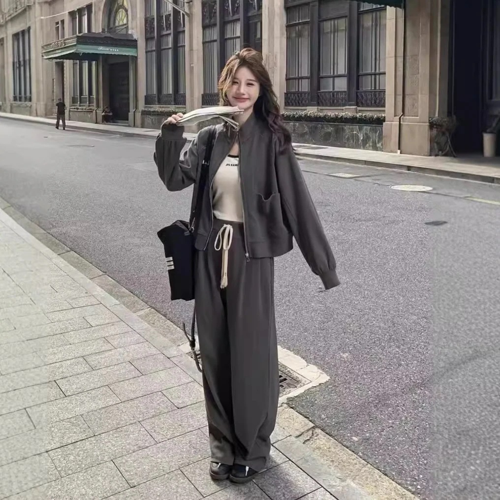グレーフーディスポーツセットアップレディース秋2026新作小柄スタンドカラージャケットストレートパンツ2点セットアップ
