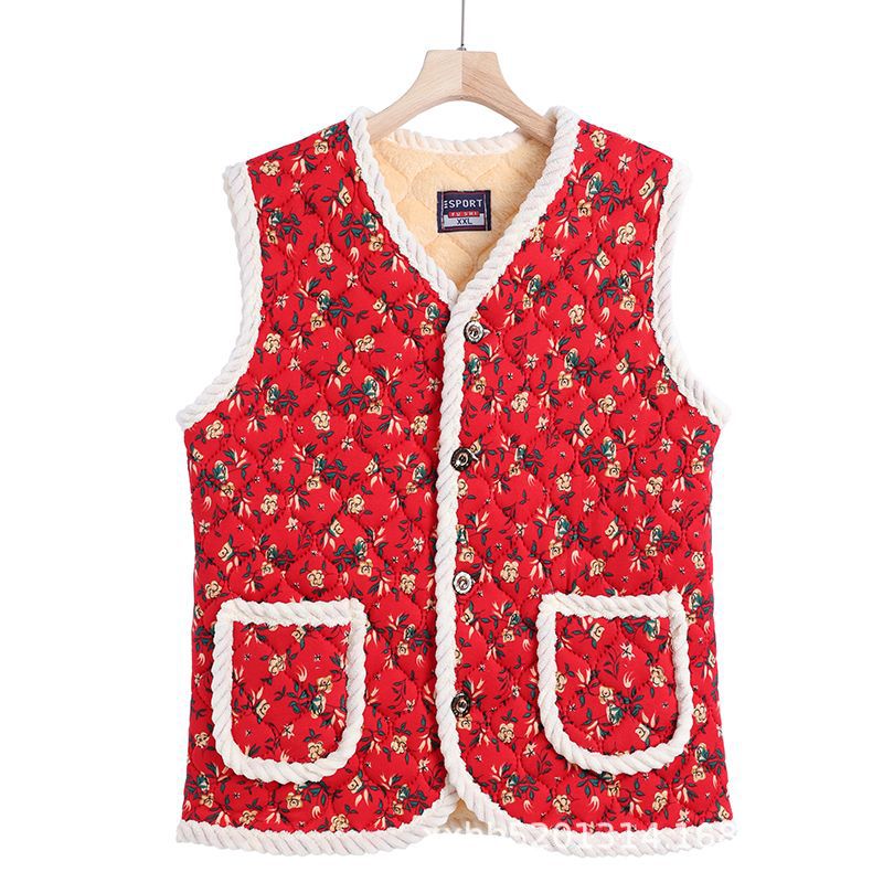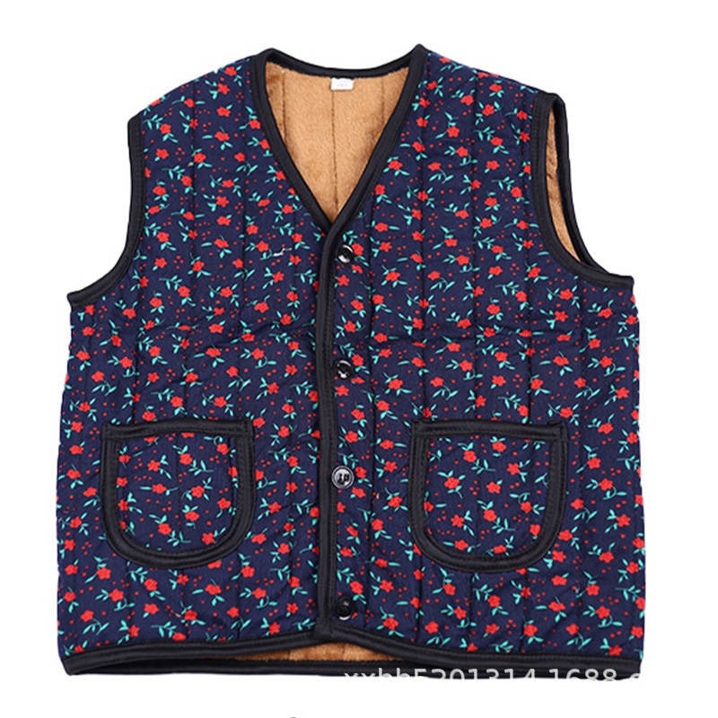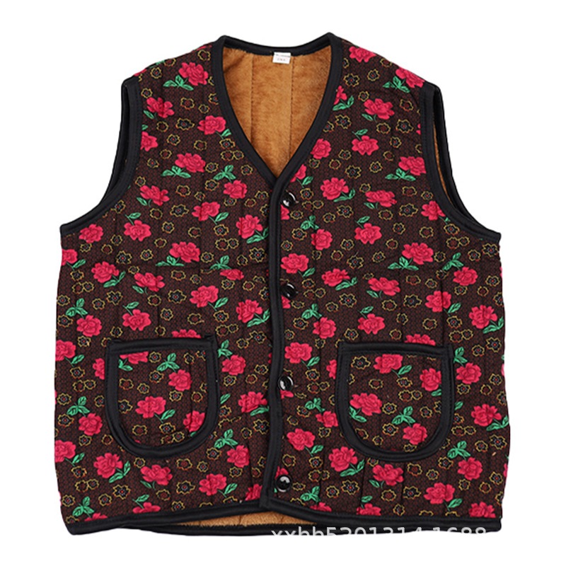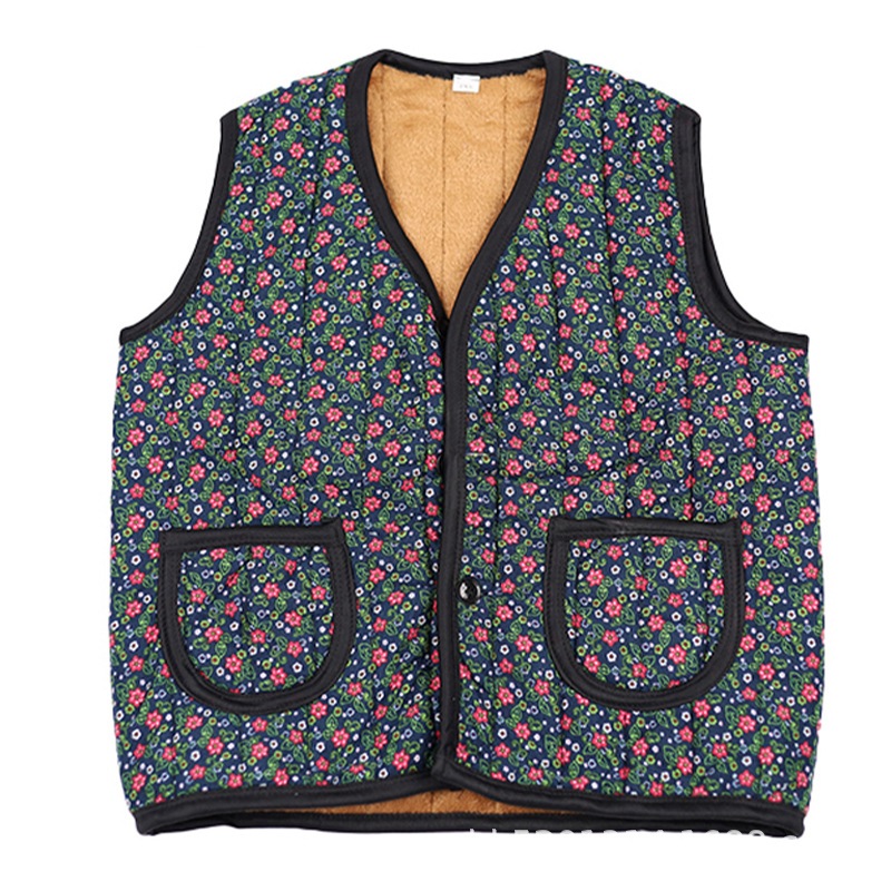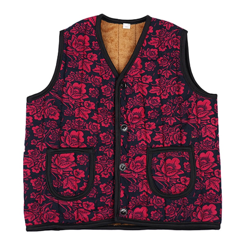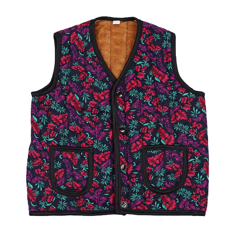 ハルモニチョッキ 韓国スタイル フラワー ミドル ポケット ボタン ベスト 裏起毛 キルト キルティング プレゼント 花柄 秋冬 レディース ハルモニベスト ハルモニ あたたかい