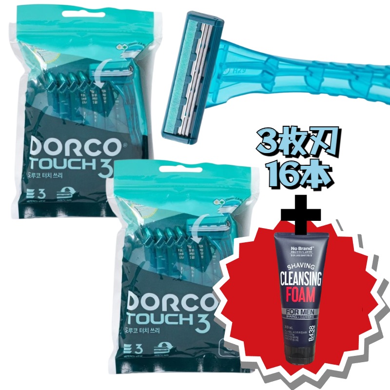 ドルコ携帯用シェーバー 3枚刃 8本×2+シェービング&クレンジングフォーム フォーメン 200ml / メンズ 髭剃り 洗顔 セット 家庭用