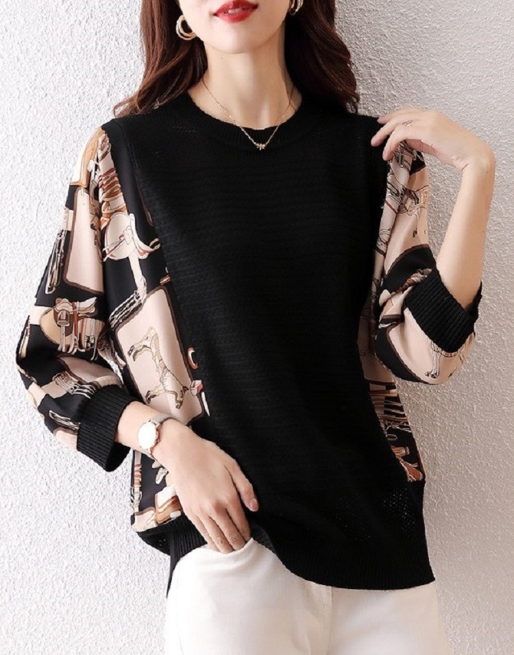 ニットTシャツ トップス レディース きれいめ 40代 春秋 長袖トップス 黒インナー オシャレ ブラウス 切り替え tシャツ 韓国風 大きいサイズ