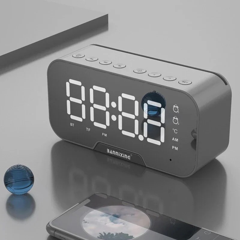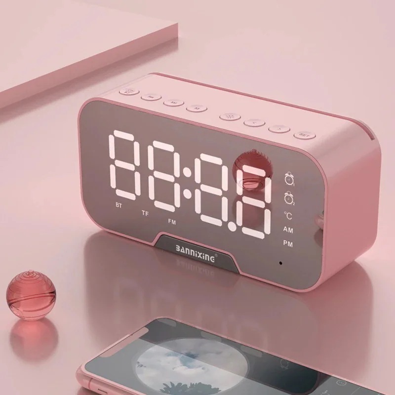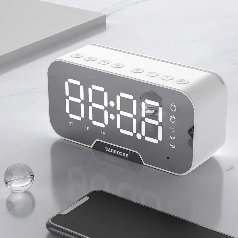 時計ブルートゥーススピーカーミニミラーLEDライト目覚まし時計小さなオーディオソース