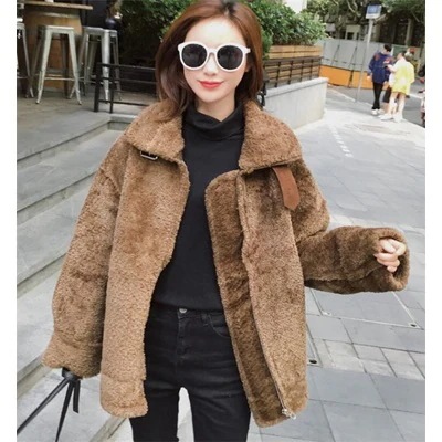 メルマガ&タイムセール中 短いスタイル 暖かい カレッジ風 毛皮 コート アウター ライダース百掛け 怠惰な風 カジュアル スリム トップス