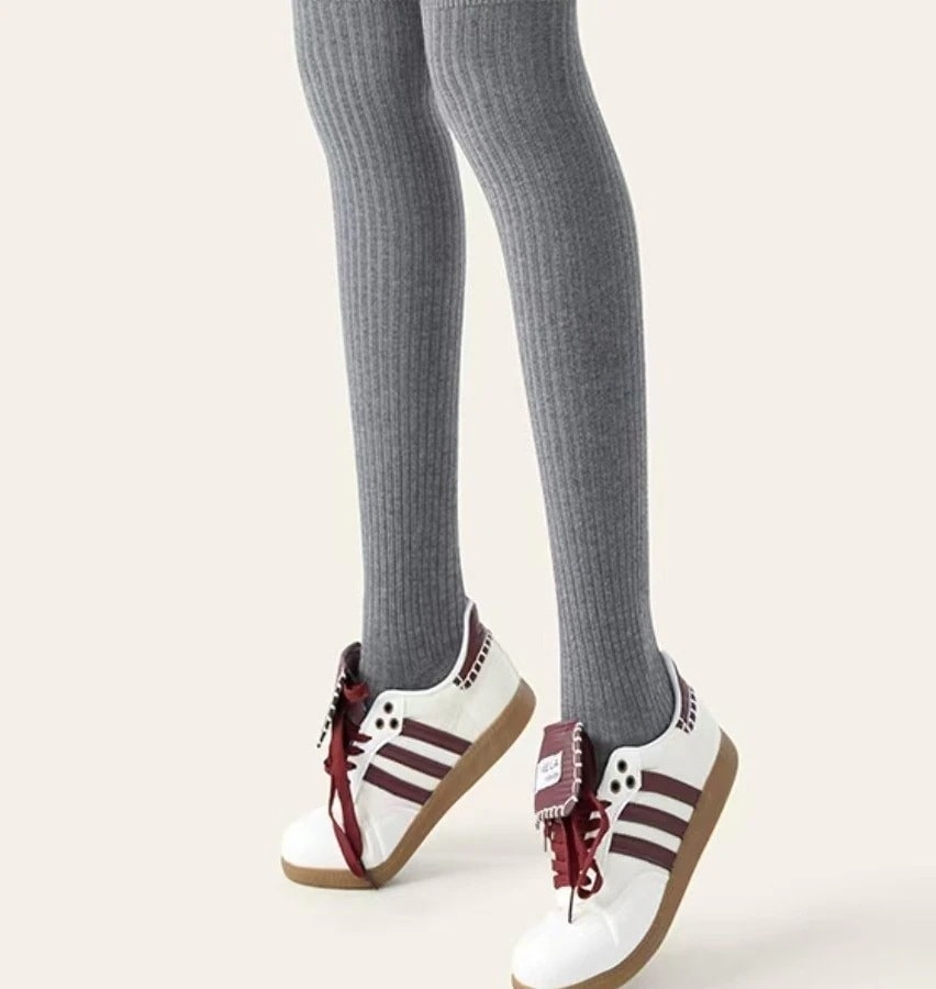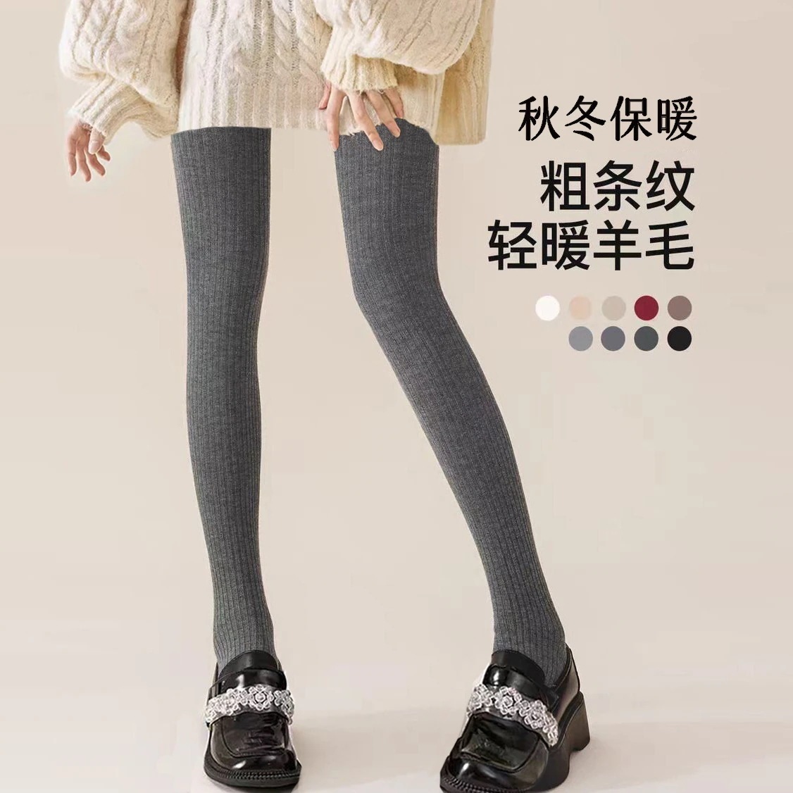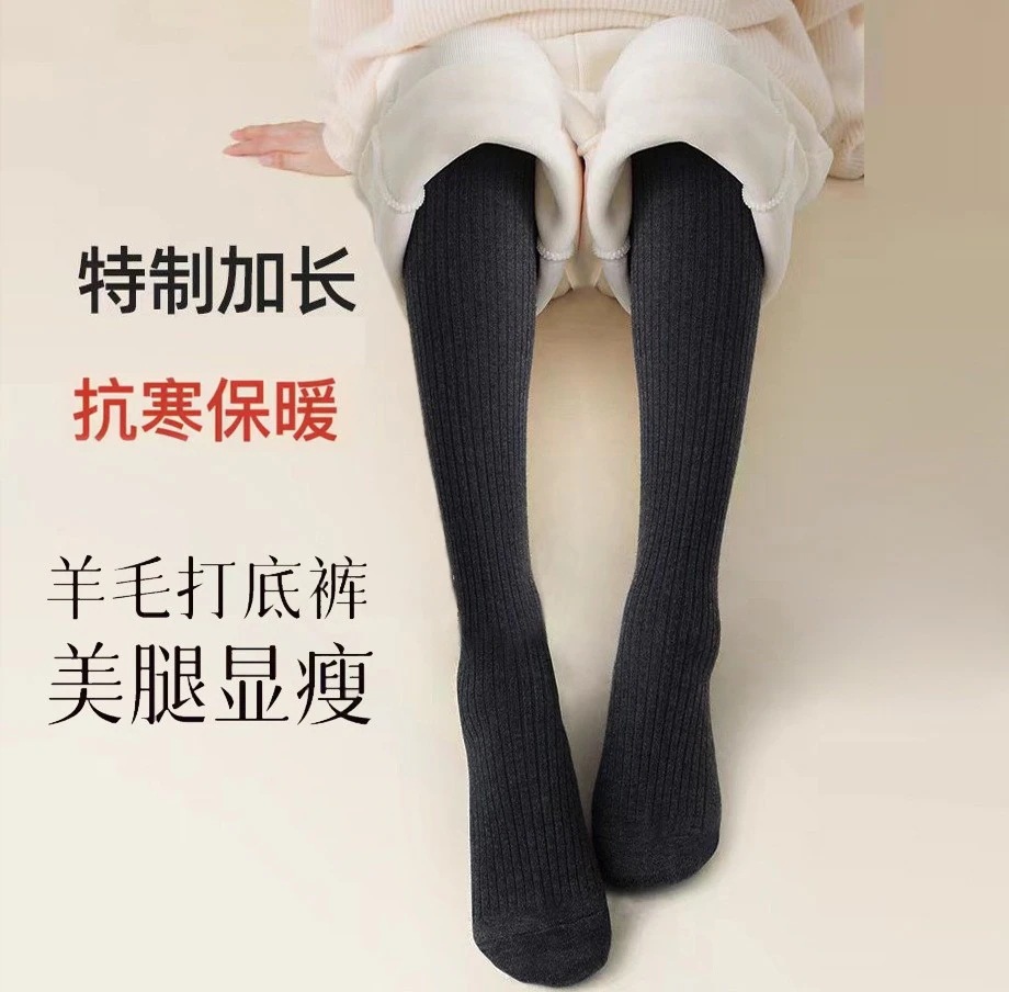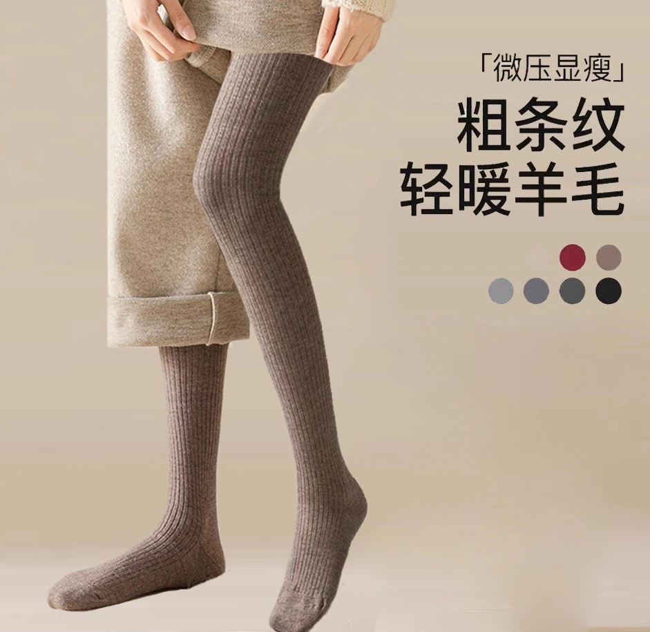グレーのパンティーストッキング女性加絨毯外着ストライプ微圧着痩せ直角と羊毛保温発熱レギンス kanxia24043