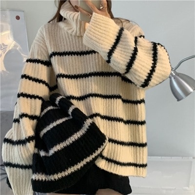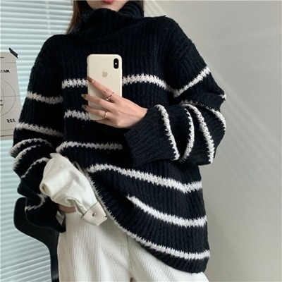 新色が安い韓国ファッション 大人気 ボーダー デザインセンス タートルネック カジュアル 厚手 セーター 快適である ニットトップス 百掛け