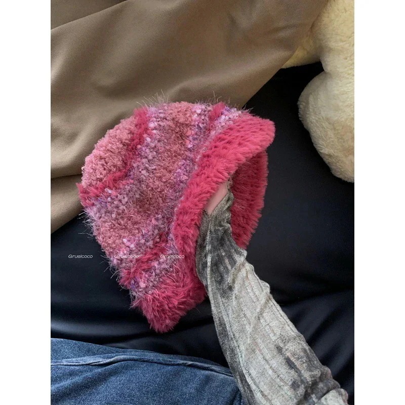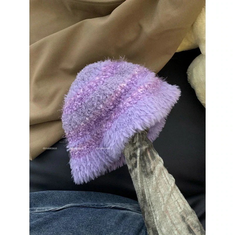 3日以内出荷ストライプのバイカラーモケット漁師帽韓国版顔が小さく見える保温ニット毛糸帽のトップハット