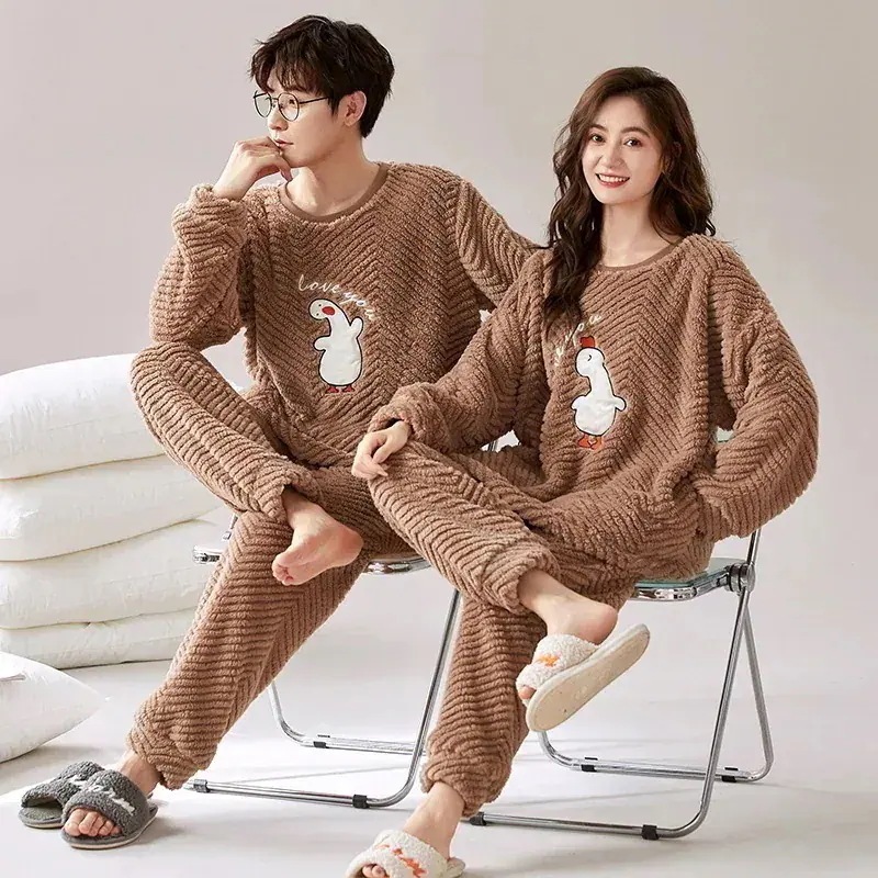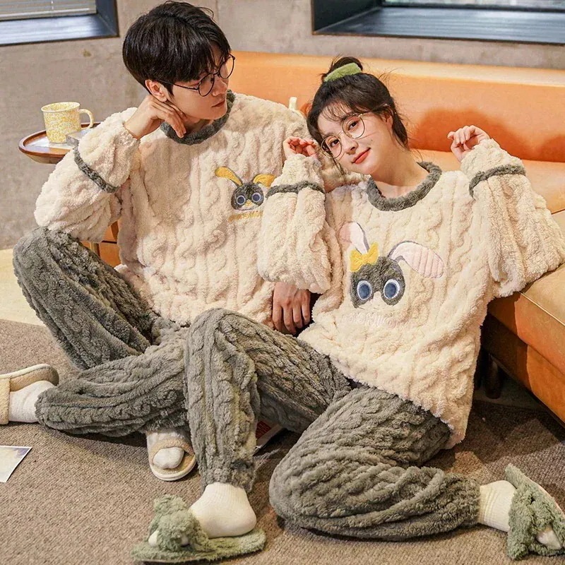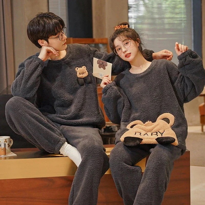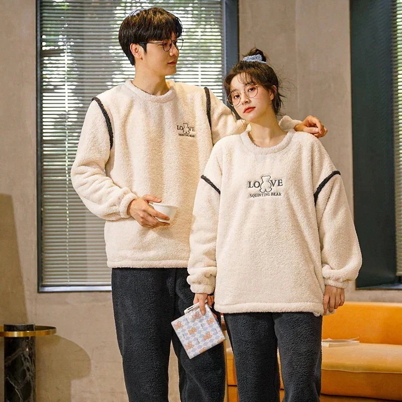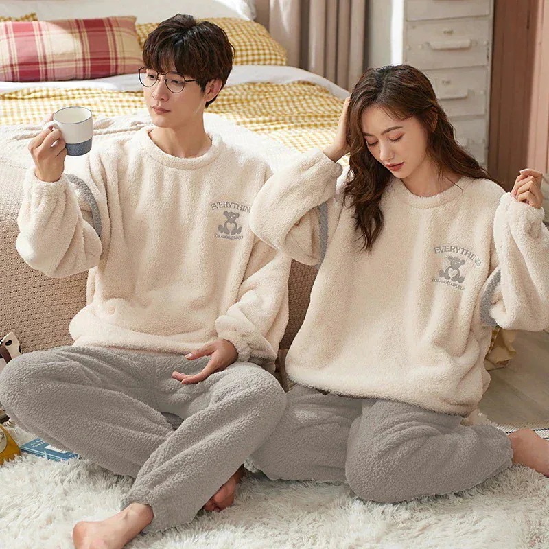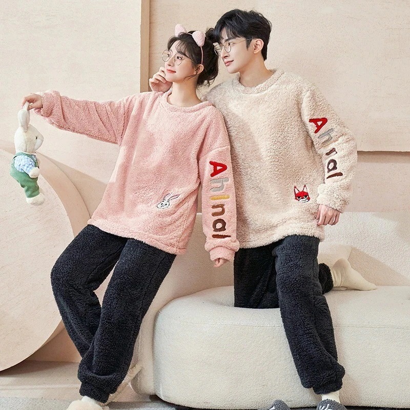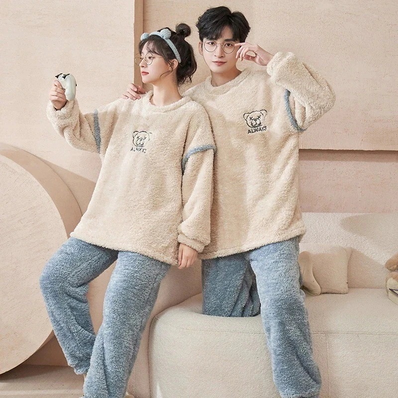 25 新作 パジャマ レディース メンズ ウェア フランネル セットアップ 長袖 上下セット 可愛い 厚手 韓国風 寝巻き 部屋着 寝間着