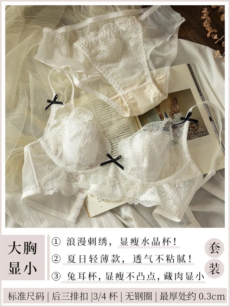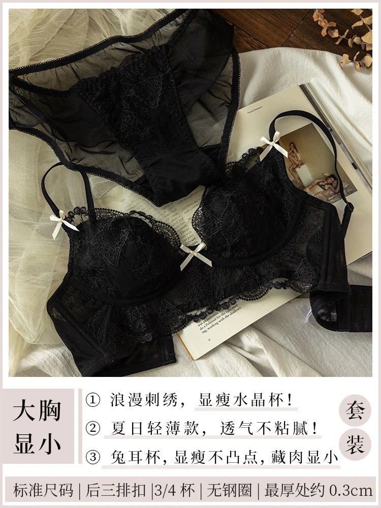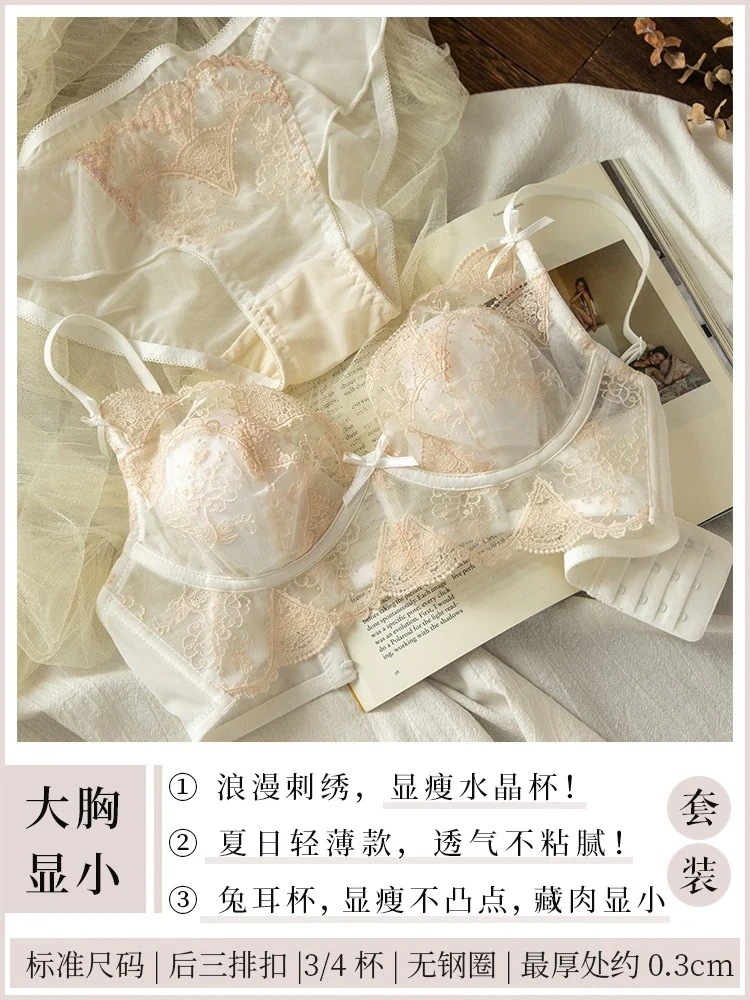 可愛いセット下着 フランス製レース下着 薄手ギャザーセクシーブラセット