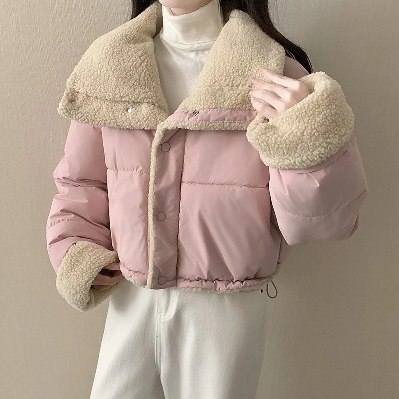 25 レディース ショートコート 韓国風 ノーカラー フェイクシープ リバーシブル ルーズ パンメン アウター