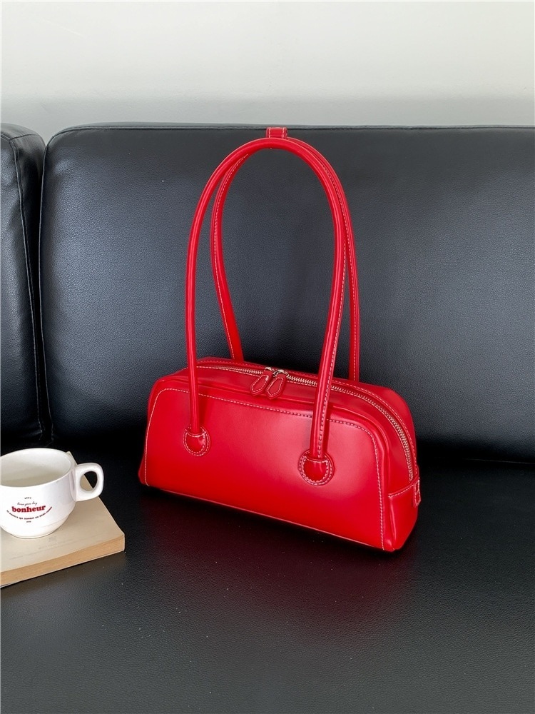 赤いハンドバッグ 女性のバッグ 韓国の新作 ショルダーバッグ バゲットバッグ 汎用性のあるファッションable PUレザー 小規模なブランドのリボン付き脇下バッグ 女性の斜め掛けショルダーバッグ