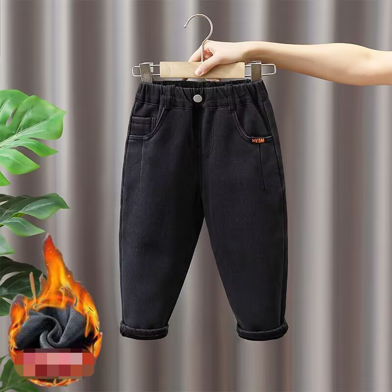 子供用加絨ズボン冬の新型一体絨毯の外に洋風の秋冬モデルのベビージーンズを厚くした長いズボンを着る