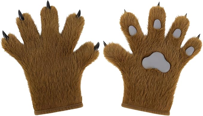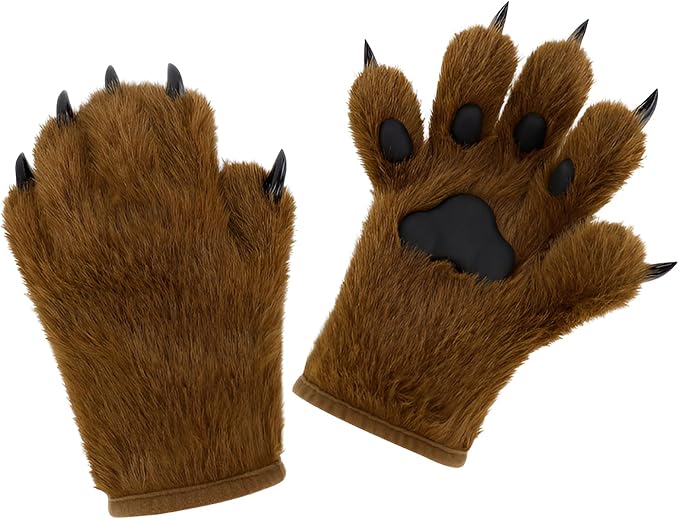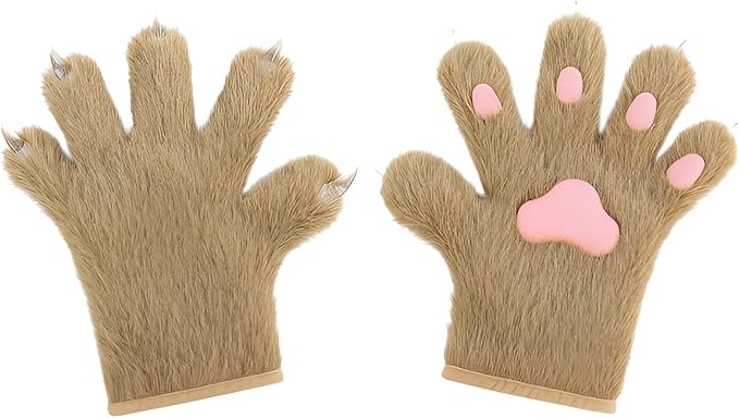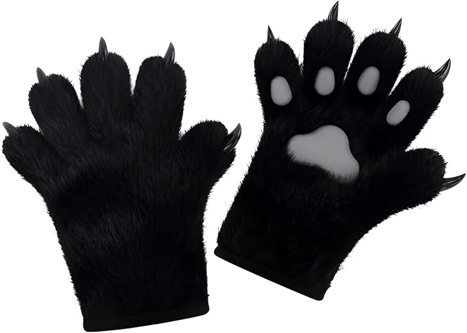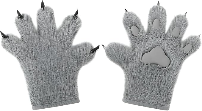 ウルフ肉球グローブ フェイクファー リアルなオオカミの足手袋 ケモノ 猫手袋 毛皮のような足跡 もふもふ 暖かい 快適 コスプレ ハロウィン ファンシー パーティー コスチューム アクセサリー