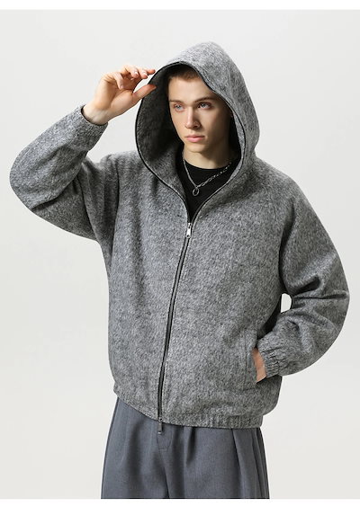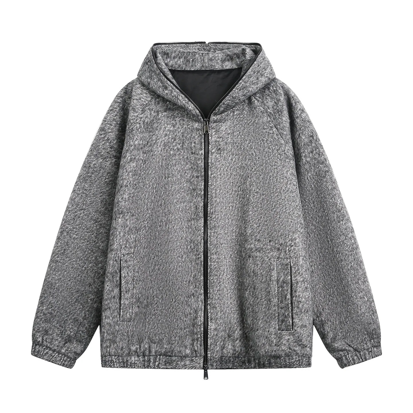 馬海毛のフードコート秋冬シルエットのゆったりした毛並みのジャケット気だるいレトロなカーディガンのパーカー