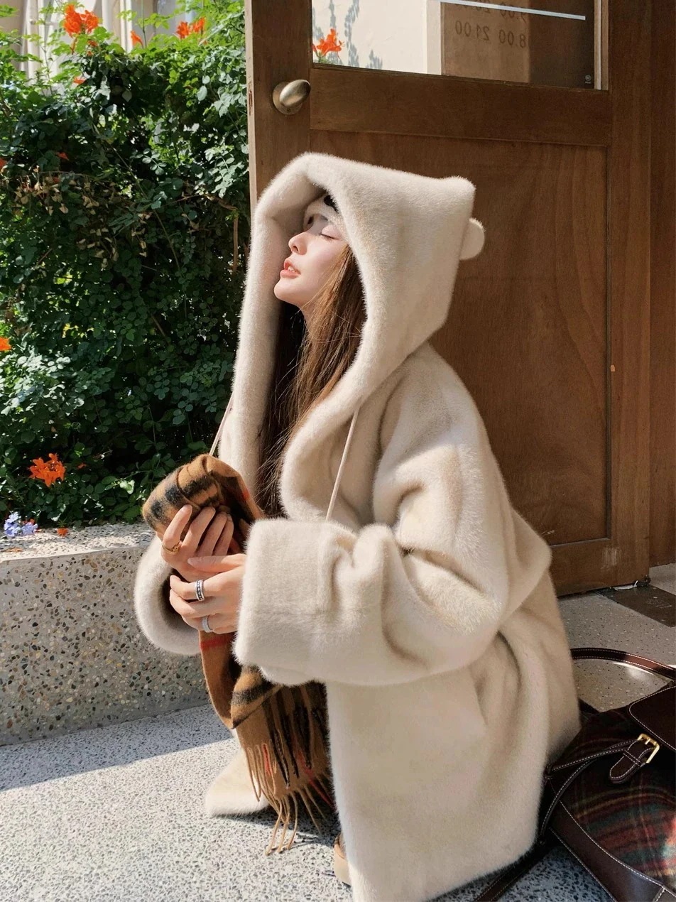 2025 秋冬 アウター フード付き 厚手 ロング丈 ボア モコモコ ファージャケット エコファー アウター冬 裏起毛 ジャケット レディースファッション