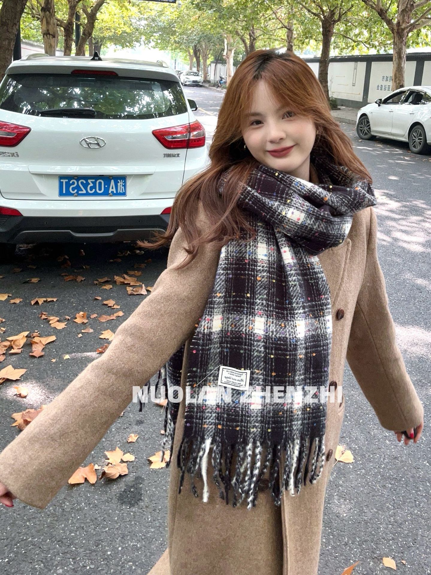 韓国風新作スカーフ(女性用) 冬用インスタ映えする万能学生チェックマフラー 保温性カシミア風スカーフ