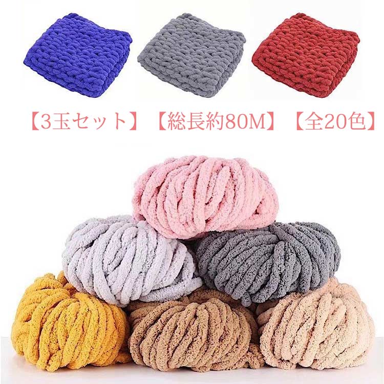 輸送費無料 3玉セット 毛糸 チャンキーヤーン チャンキーニット モールヤーン 毛糸 太 アクリル 編み物 手芸 ふわふわ モコモコ シェニールニット 無地 ブランケット ペットベッド クッ