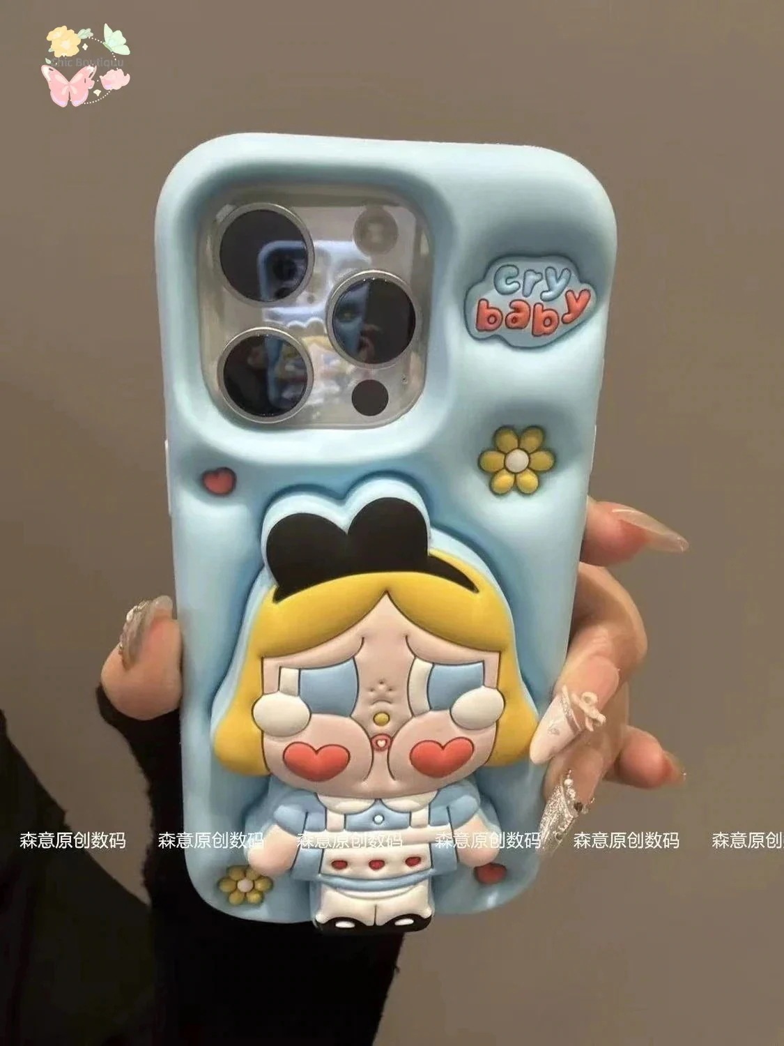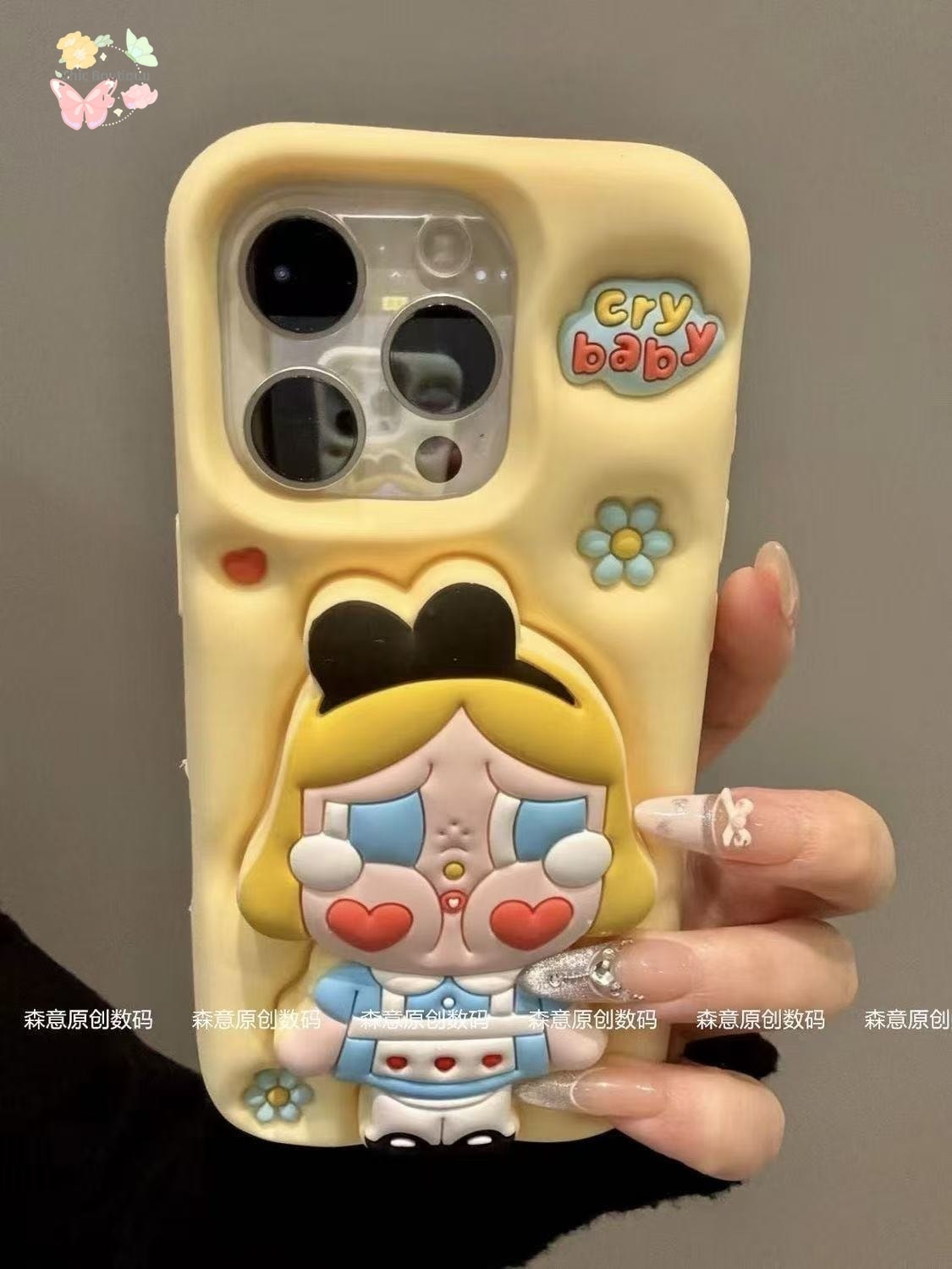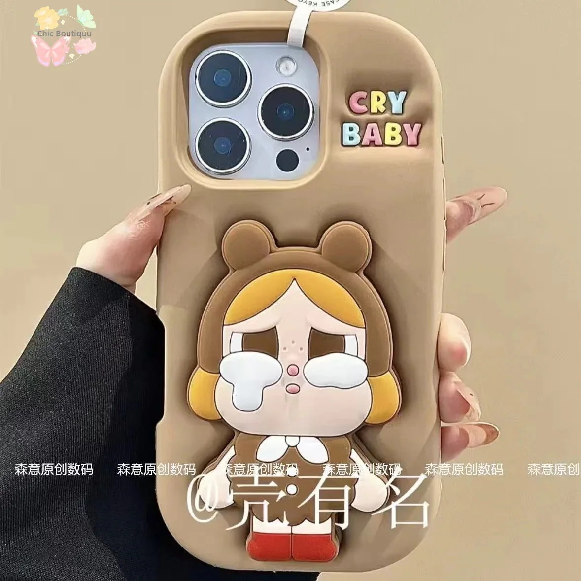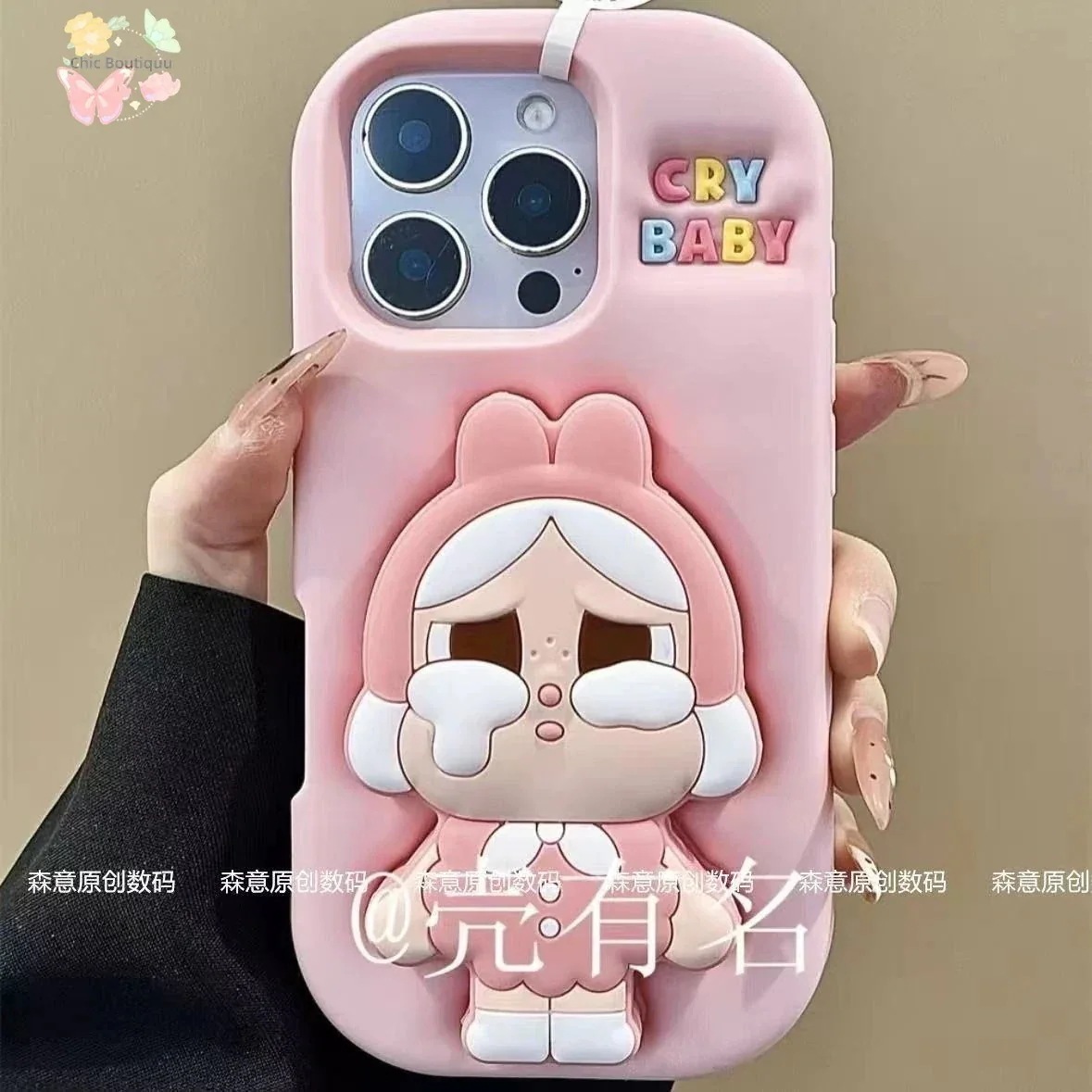 cry babyスマホケースかわいい泣き虫携帯ケースiPhone 16 proアップル15 promax携帯ケース14保護カバー携帯ホルダー付き
