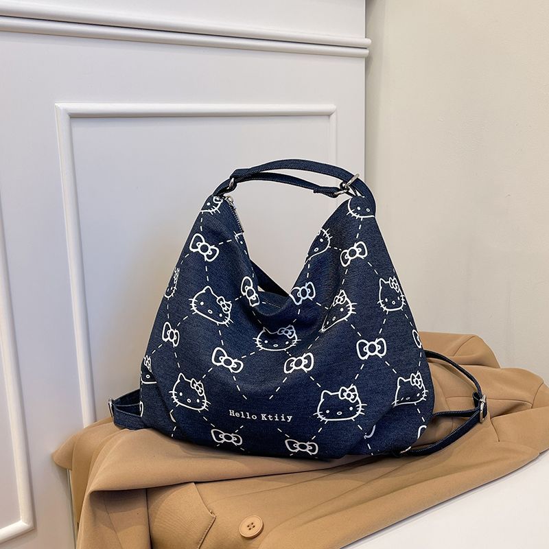 日系レディース ヒョウ柄 キティちゃん トートバッグ デニムリュックサック リュック キティ バッグ ボディバッグ ンエコバッグ ショルダーバッグ グ スマホケース付 ポーチ 通学リュック リュック
