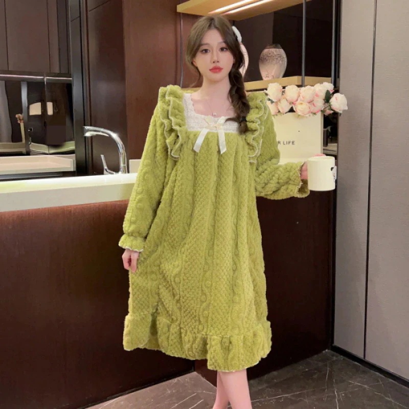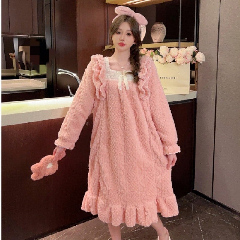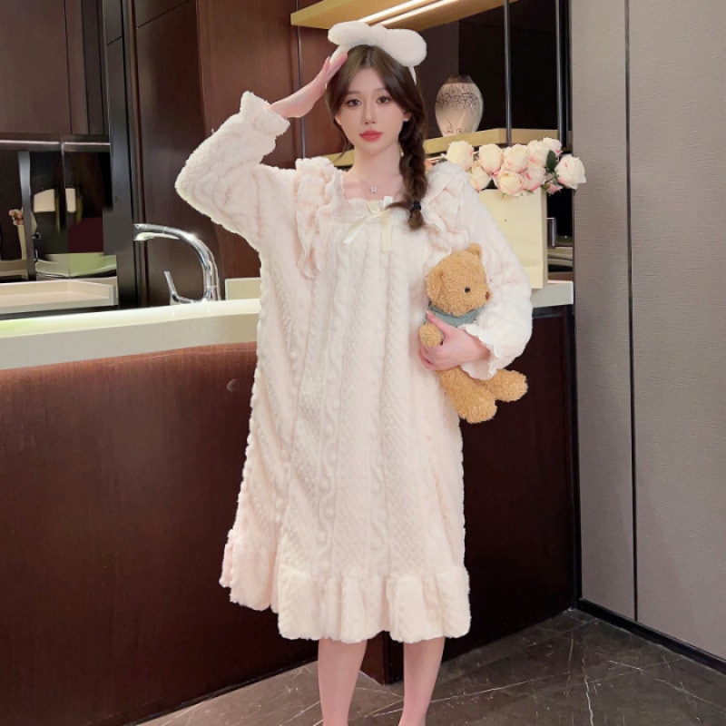 【3日以内出荷】2026 秋冬 ルームウェア ワンピース パジャマ ワンピース 秋冬 新作 長袖 裏起毛 パジャマ きいサイズ レディース2026 秋冬 ルームウェア