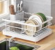食器水切りラック スリムで省スペースな水切りかご カトラリーホルダー付き食器乾燥ラック ステンレス製 箸立て 組立簡単 長さ40.5*幅30.5*高さ13CM 自動排水