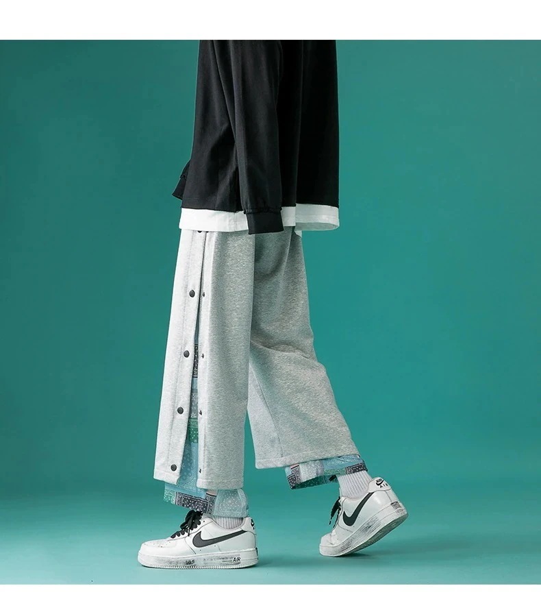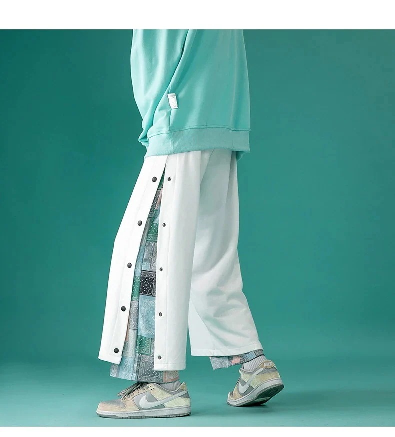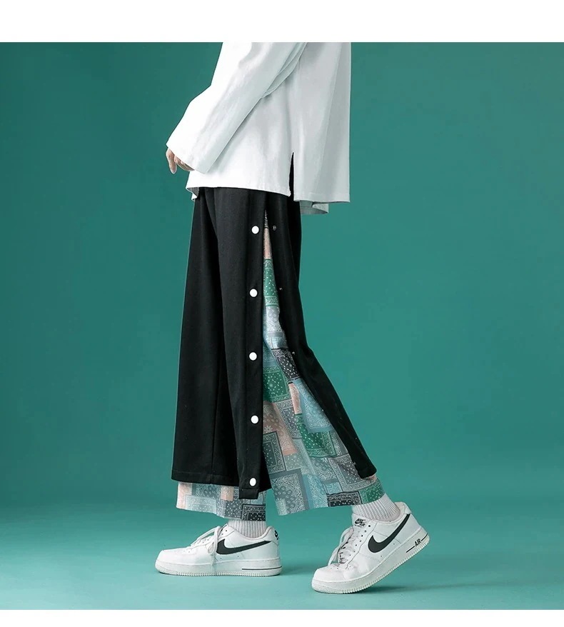 山本風ブレストズボン ワイドパンツ 9分丈 メンズ きいサイズ チャイナ風ストリート カジュアル
